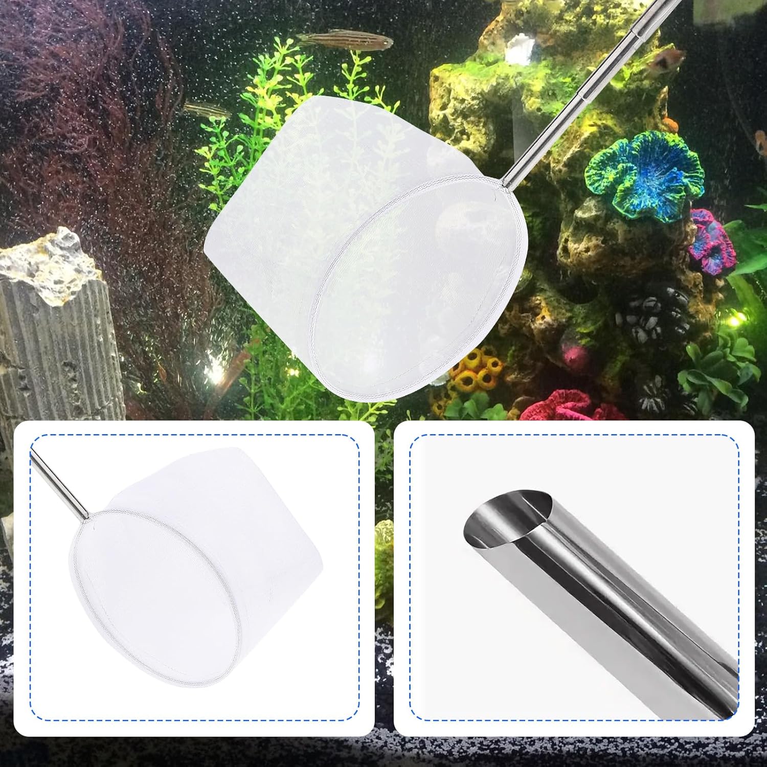 Fine Nylon Mesh: Fish scooper net is made of soft yet strong nylon. It is designed to be gentle on the delicate scales of fish while being strong enough to withstand daily use. It will enhance your aquarium maintenance routine.