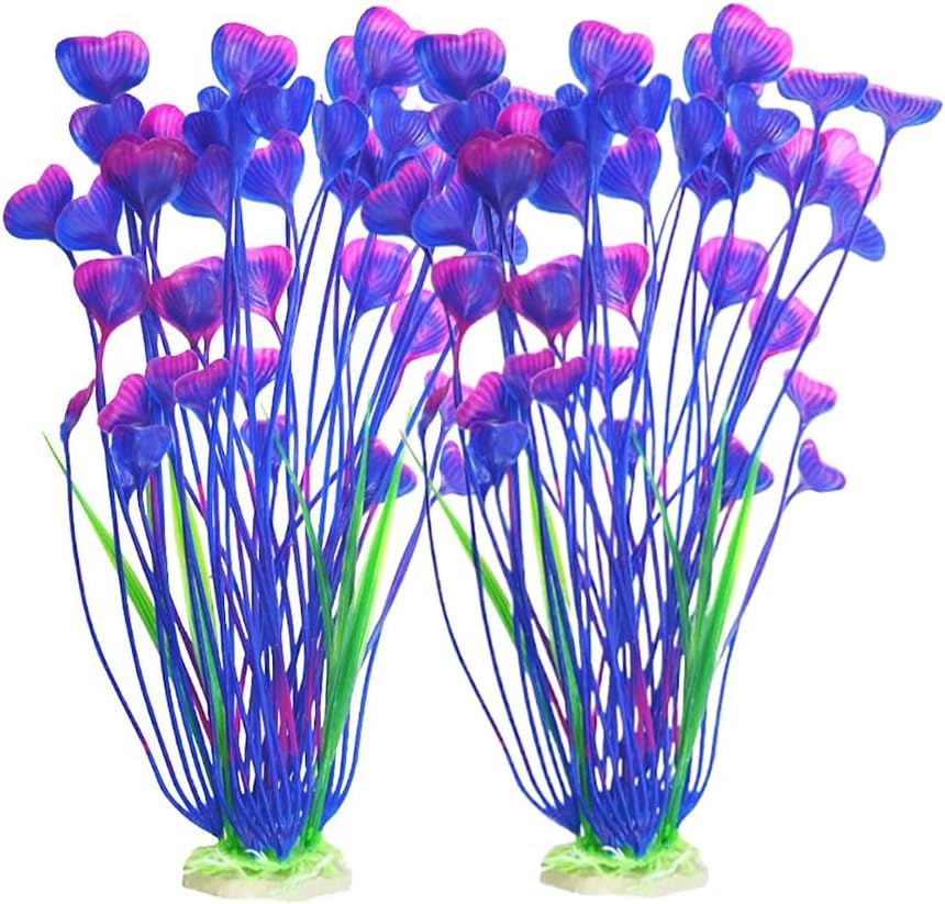 Artificial Plants Decoration Ornament for Fish Tank Aquarium Plastic Plants Tall 16 inch 2 Pack (Purple)