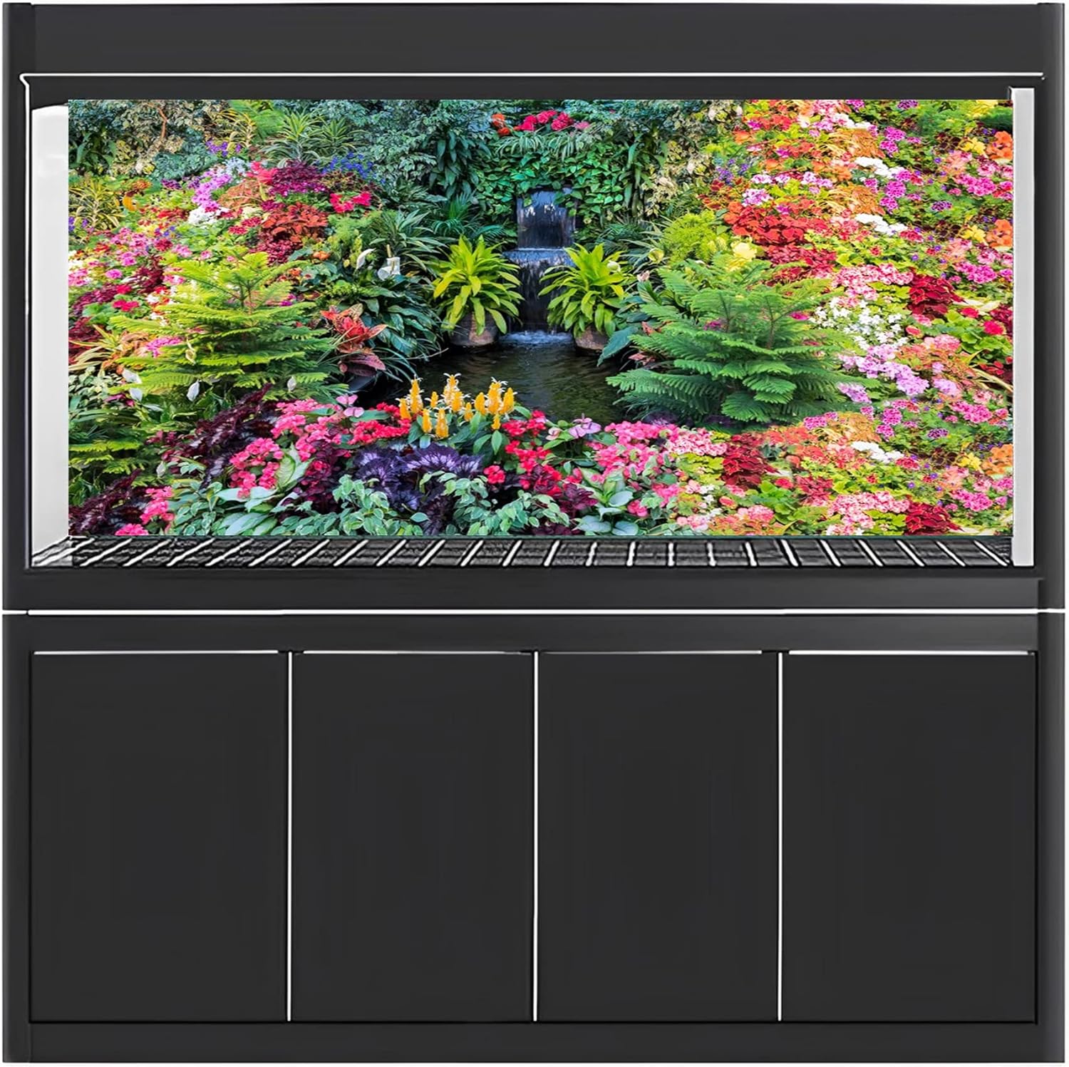 AWERT 36×20 inches Spring Floral Terrarium Background Waterfall Colorful Flowers Leaves Forest Nature Scenery Aquarium Background Vinyl Background