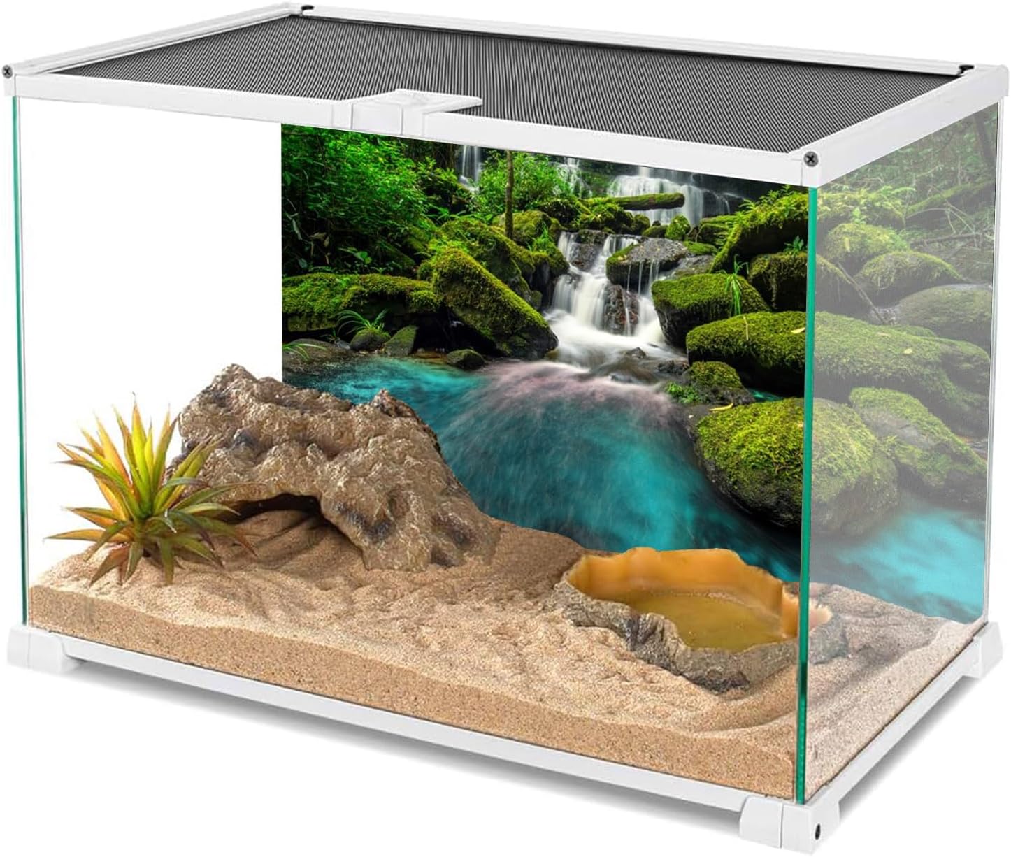 AWERT 72×24 inches Waterfall Terrarium Background Tropical Rainforest Aquarium Background Mountain Lake Green Tree Reptile Habitat Background Durable Polyester Background