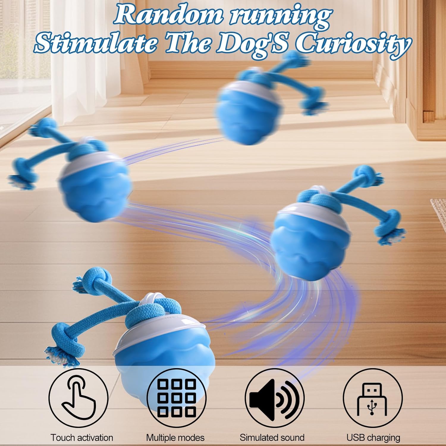 Barkzys PowerTail 2.0 Interactive Dog Toy, Automatic Rolling Ball with Squeaker, for Small Medium Large Dogs