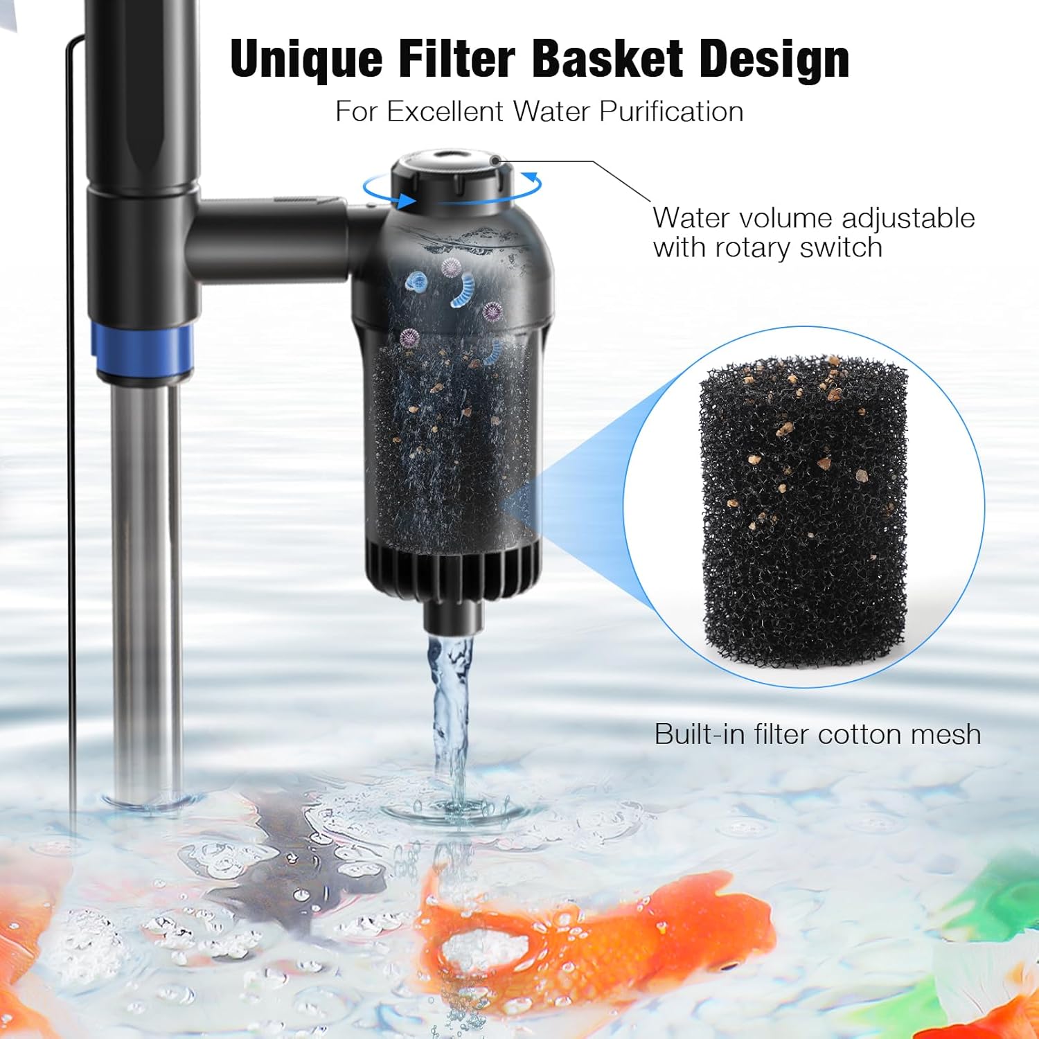 【Upgraded filter cup】Contains sponge, biological filter balls and activated carbon balls, which can effectively filter impurities and return clean water to the fish tank to achieve water filtration and circulation. Cleaner than ordinary sponge filter cups and filter bags.