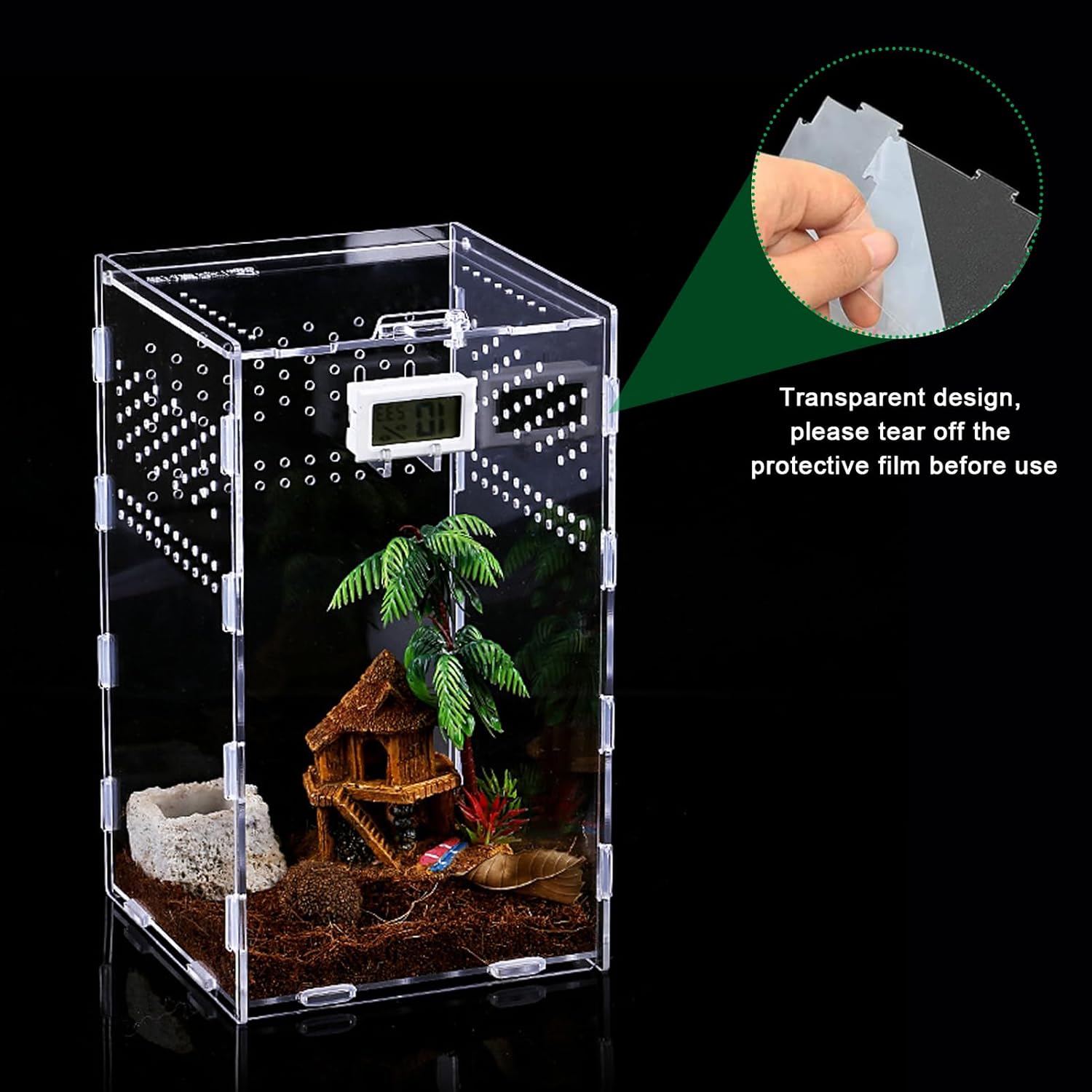 【Durable and Portable】The terrarium is made of high-quality, non-toxic acrylic, providing a clear and bright environment for your pets while ensuring their safety and well-being. Its lightweight design makes it easy to carry and transport, perfect for outdoor adventures or trips to the vet.