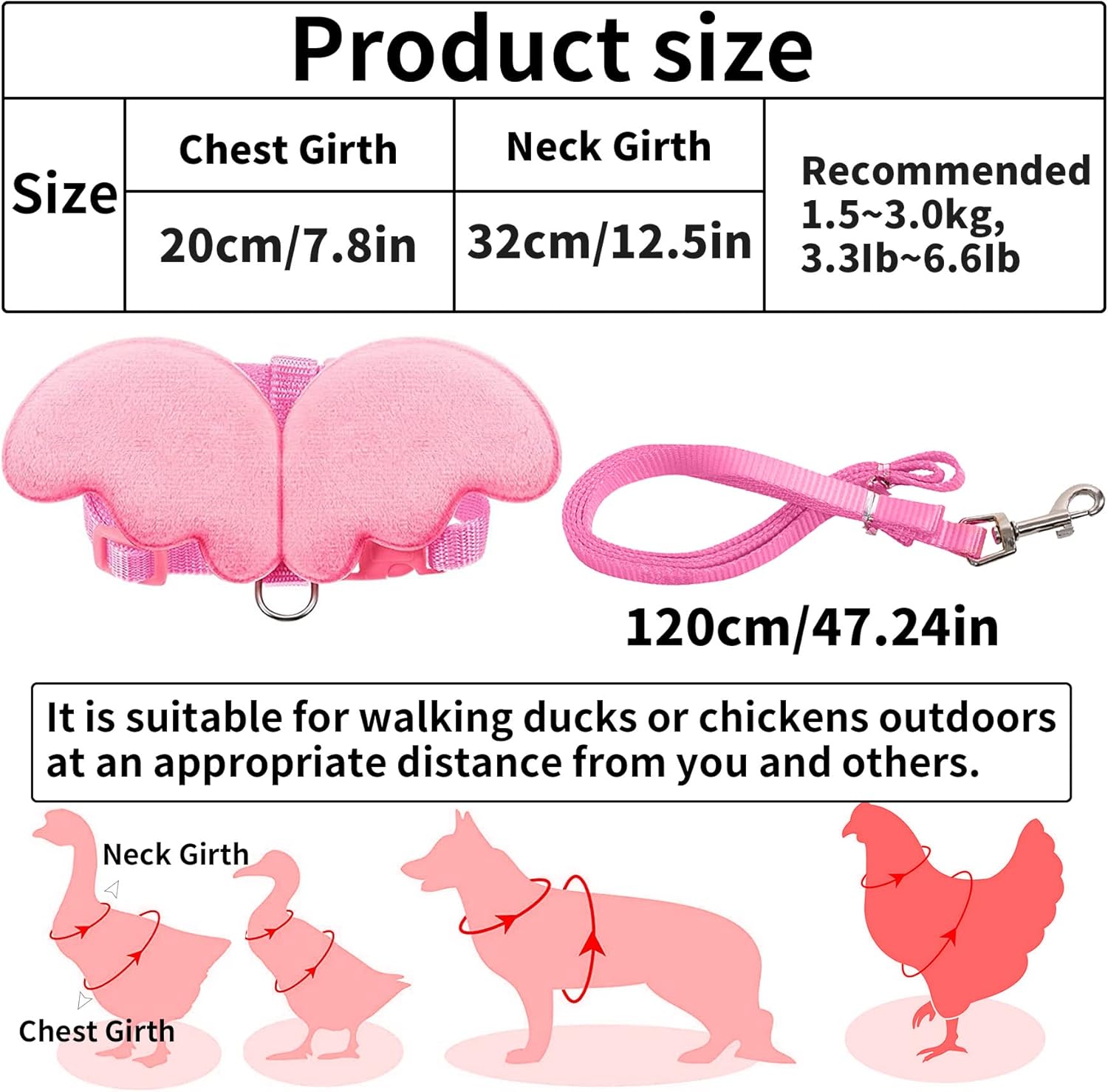 Package Include: The package contains 1 pieces of duck outside walking harness leashes. easy to put on and take off, the whole design is simple and very light weight , or share with your friends.