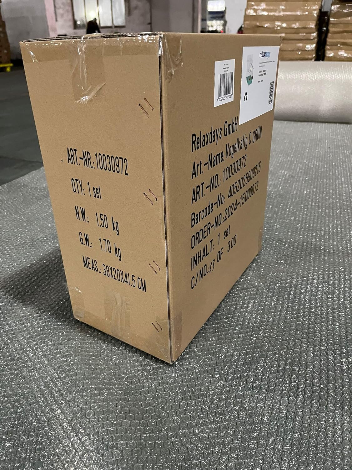 Give your feathered friend a cosy home with this parakeet cage. The cage is ideal for small birds such as canaries, finches and similar species. The bird can play with the swing or rest comfortably on the perches. To clean the cage you can use the pull-out drawer. For cleaning and refilling the bowls, you can easily remove them from the outside. A tension mechanism ensures that the window opening snaps shut immediately.Important note: For a healthy lifestyle, a bird needs the opportunity to fly freely at least once a day.Bird Cage in Detail- Overall dimensions H x W x D: approx. 50 x 42.5 x 33.5 cm- Weight: approx. 1.5 kg- Material: steel, polypropyleneExotic Bird Cage with Perches- Dimensions floor panel H x W x D: approx. 9.5 x 35 x 28 cm- Dimensions door H x W: approx. 11.5 x 9.5 cm- Dimensions 2 x windows H x W: approx. 5.5 x 5.5 cm- Swing diameter: approx. 10.5 cm- Distance between bars: approx. 1 cm- Perches W x D: approx. 33.5 x 1.2 cm- Bowls outside H x W x D: approx. 7.5 x 7 x 7 cmDecorative Bird House for Your Home- Suited for canaries and finches etc.- With adjustable perches and swing to play on- Feeding bowls are easily removable from the outside- Removable bottom tray for easy cleaning- Practical as a quarantine cage if one of your birds from your group is ill- Decorative design with attractive pointed roofsIncluded in Delivery- 1x bird cage- 2x perch- 2x feeding bowl- 1x swing- Decorative items are not included in the scope of delivery