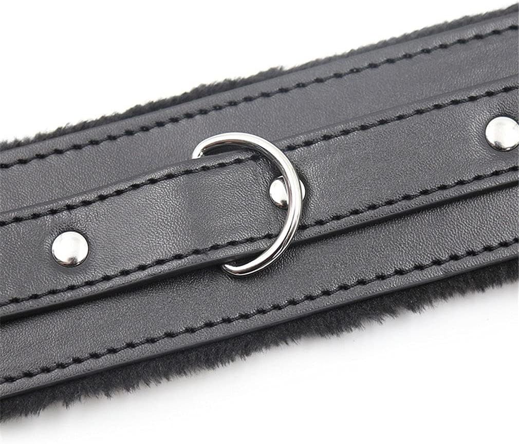 Black Leather Collars Gothic Plush Leather Collars Choker with Chain Detachable Leash Rope Small Pet Collar