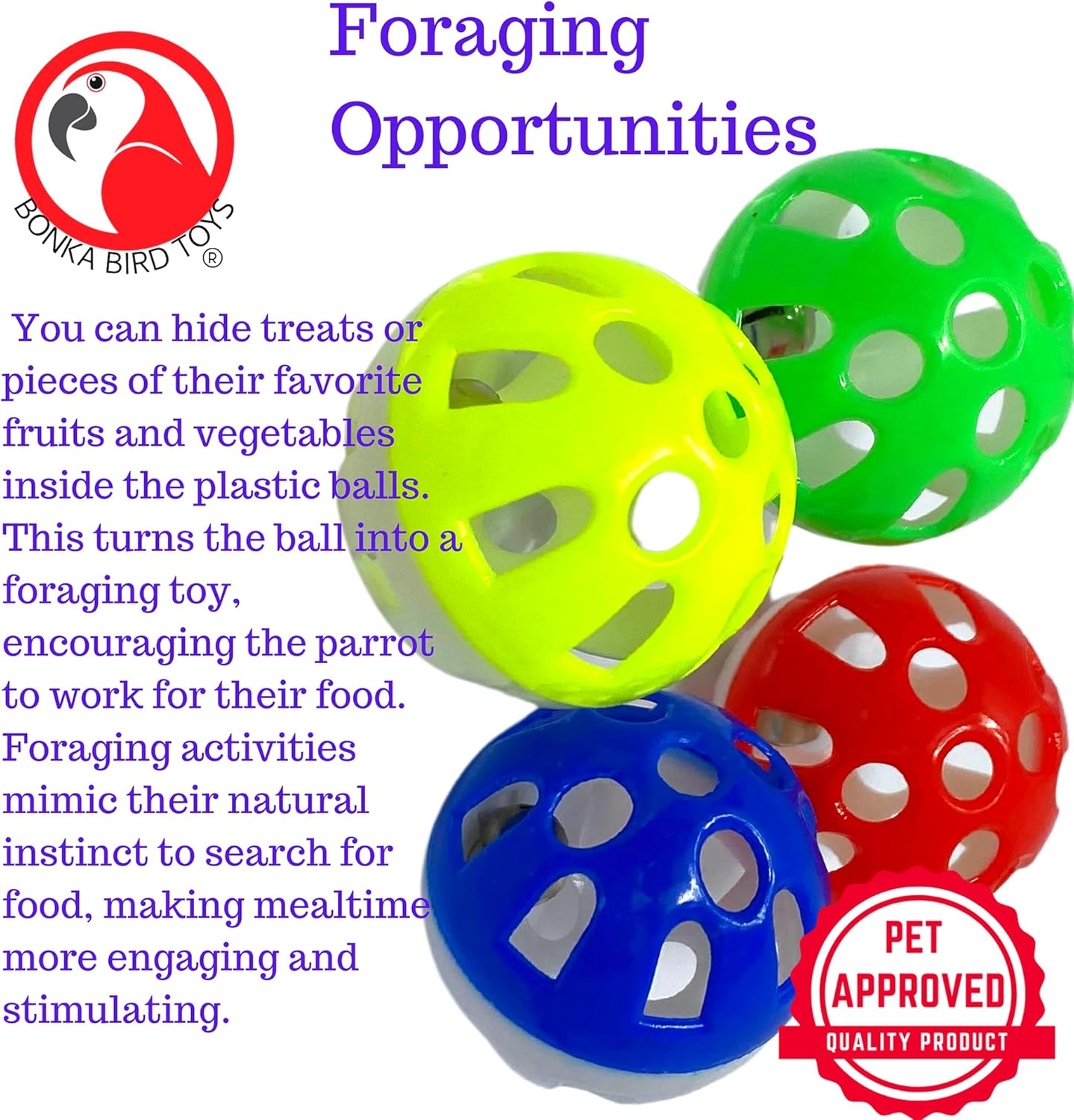 Introduce your feathered friends to the Bonka Bird Toys 35036 Pk4 Jingle Balls, a perfect blend of fun and engagement. This set features four foot toys, each constructed from high-quality, bird-safe translucent plastic, ensuring durability and safety. With a diameter of 1.62 inches, these toys are ideal for birds of all sizes and breeds. Each jingle ball is thoughtfully designed with a two-tone color scheme that attracts and keeps your bird’s attention. Inside, several smaller rattler balls create captivating sounds when moved, providing not only auditory stimulation but also encouraging physical activity. These toys help prevent boredom, promote motor skills, and enhance your bird’s daily sensory experiences. The toys’ versatile design allows for multiple uses, either as standalone foot toys or integrated into larger toy setups within your bird’s cage. Additionally, their robust and easy-to-clean material makes them suitable for various crafting projects involving birds. Equip your avian companions with Bonka Bird Toys Jingle Balls for endless entertainment and stimulation.