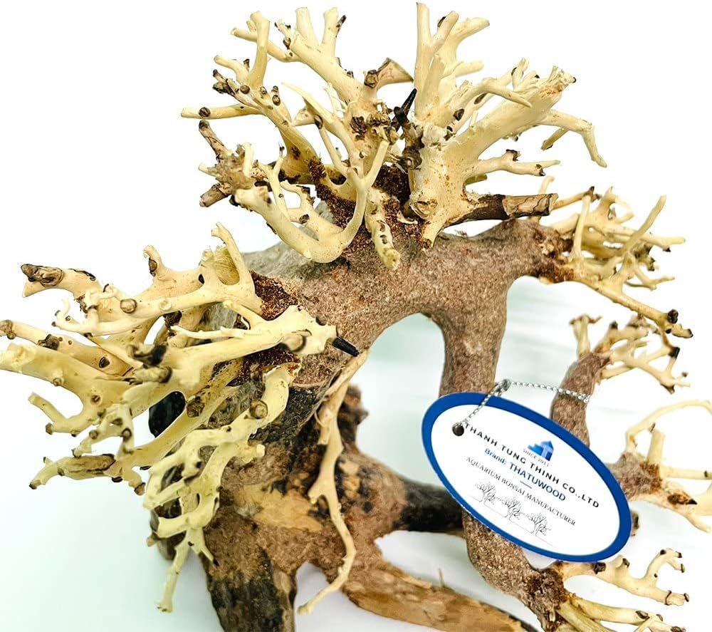 Bonsai Driftwood Aquarium Tree (8in H x 6in L), Handcrafted Fish Tank Decoration | Easy to Install Driftwood Bonsai for Fish Tank | Decor Aquascape Wood (Bonsai Tree)