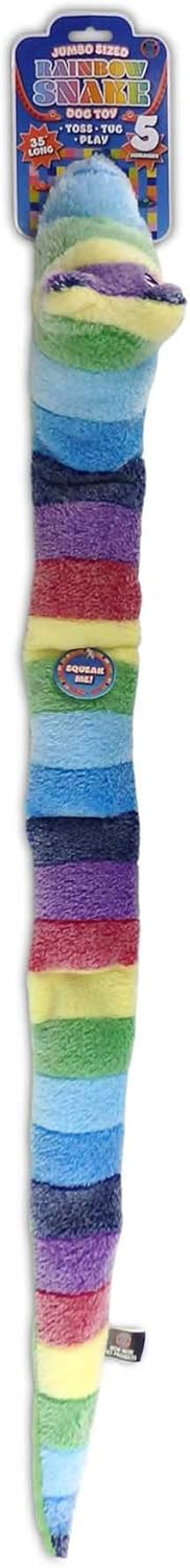 5 Squeak points – This rainbow-colored snake toy is designed with five strategically placed squeakers to provide hours of entertainment for your pup! They will enjoy running, fetching, and tugging around their very own pet pal.