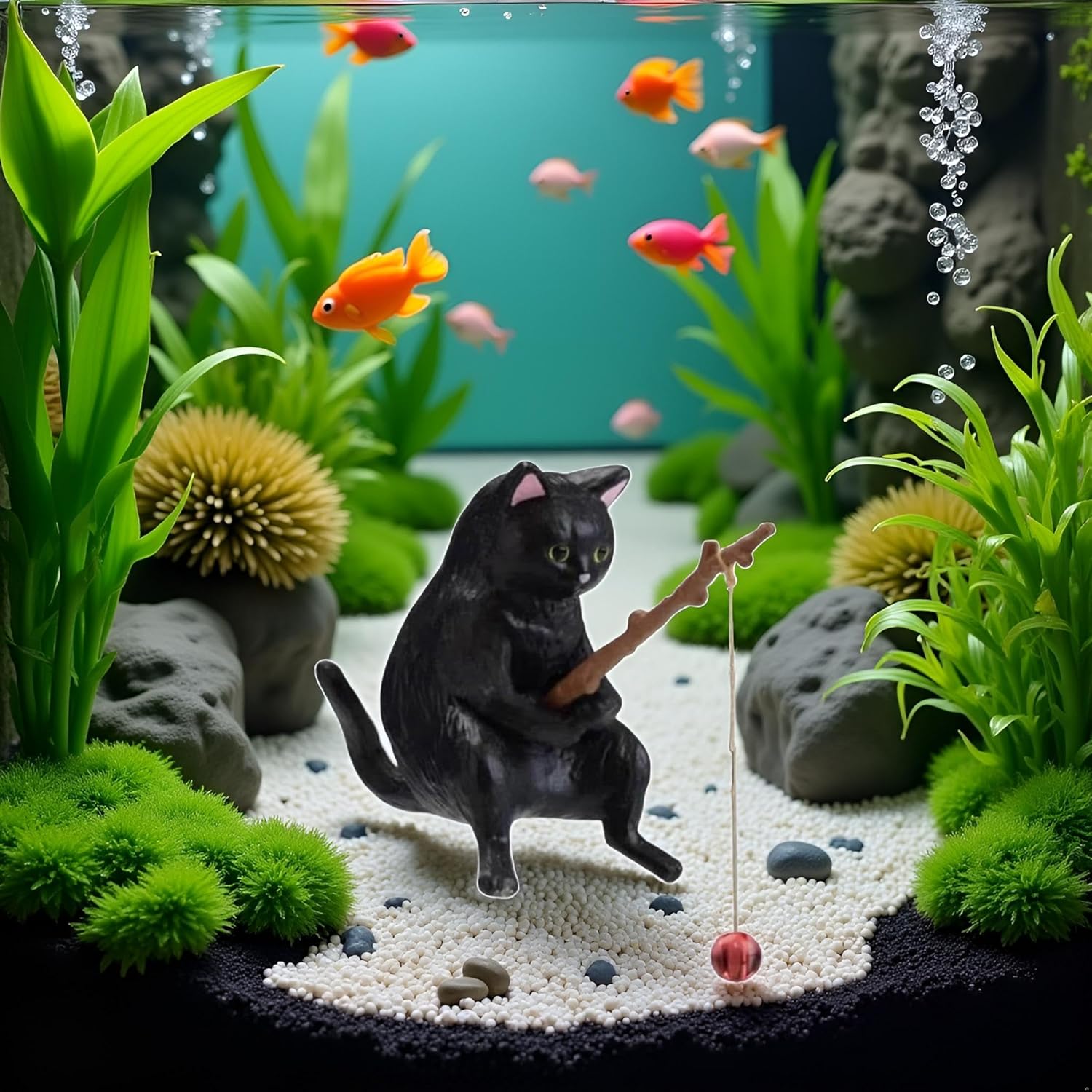 BWESOO Black Fish Tank Landscaping Cartoon Fishing Cat Ornaments Aquarium Accessories Household Supplies Home Office Decorations Fishing Cat Figurine Aquarium Décor Thematic Ornaments