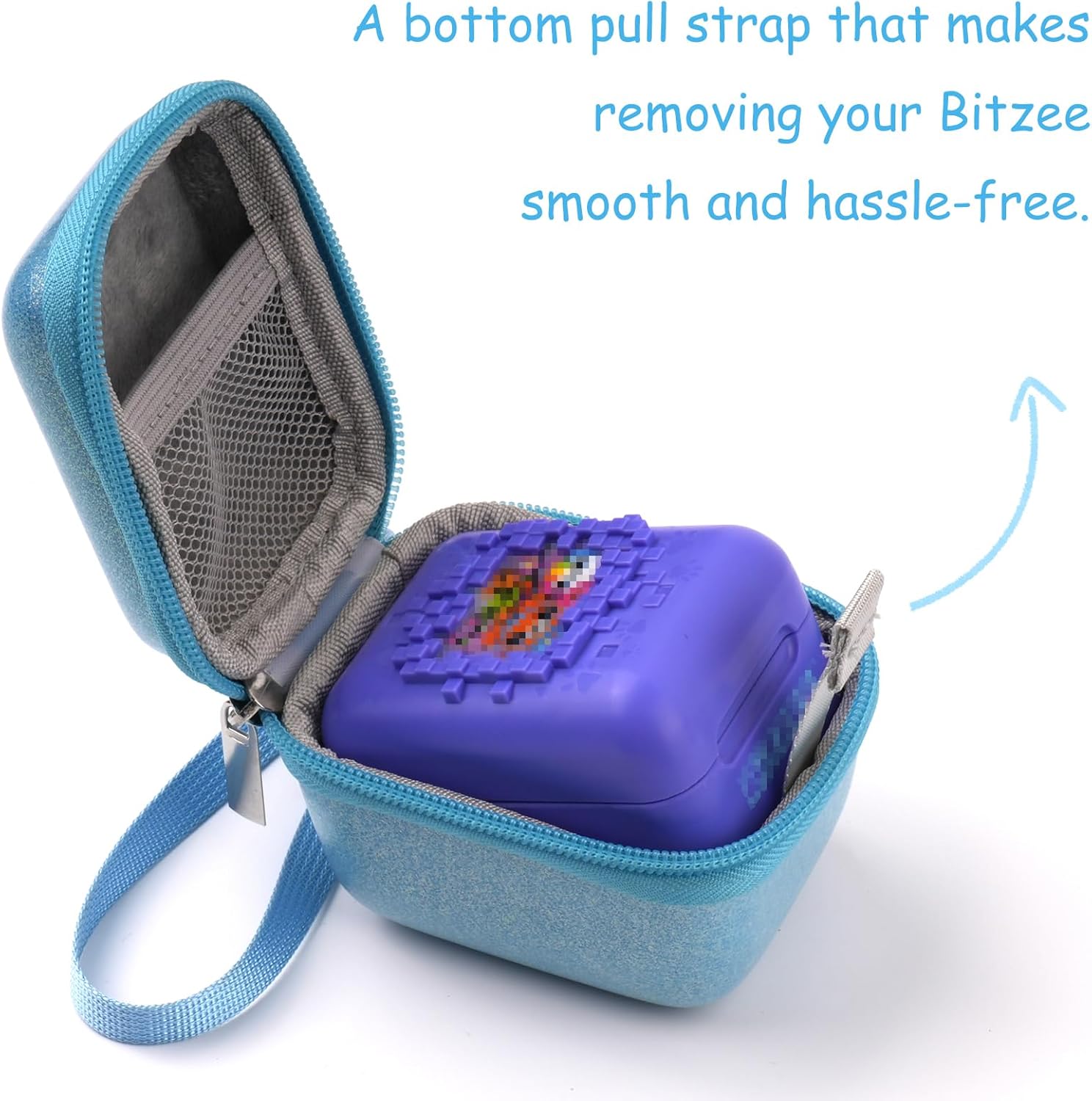 【Portable & Convenient】🎒 Wrist Strap + Easy-Pull Tab for Quick Access – Includes a comfortable wrist strap for travel and a bottom pull strap that makes removing your Bitzee smooth and hassle-free.