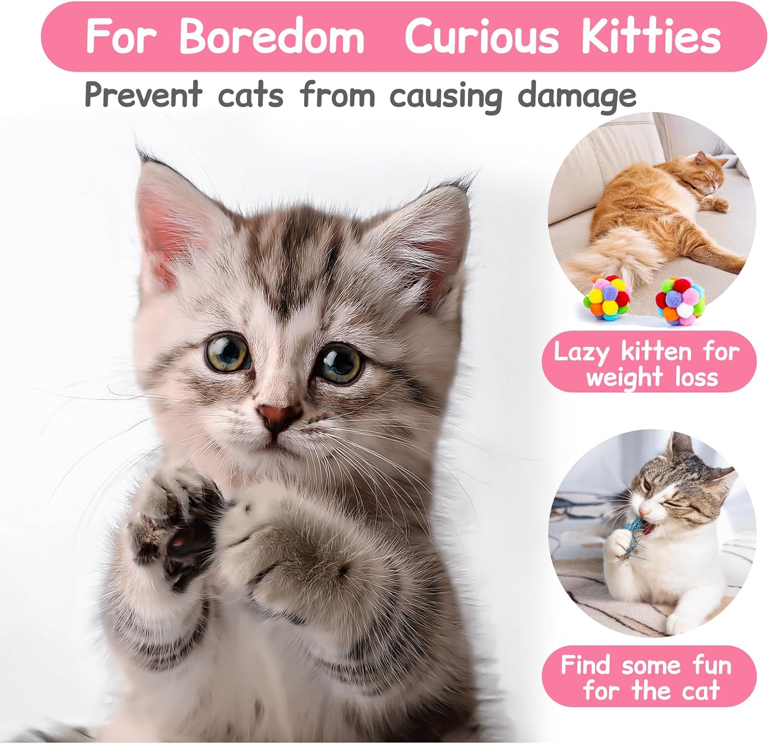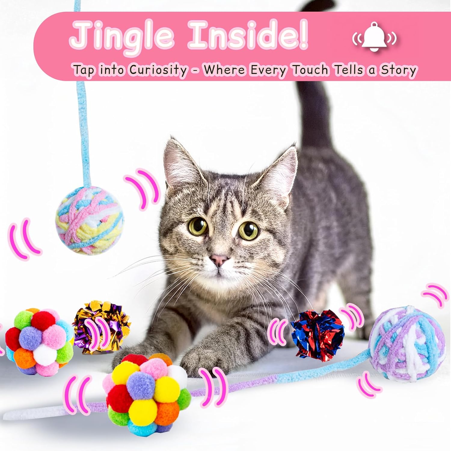 4pcs yarn cat balls with bells inside, 4pcs colorful ball with rustling stones perfect interactive cat toys for indoor cats. 4pcs crinkle balls provide enrichment and stimulation, keeping your kitten engaged for hours.