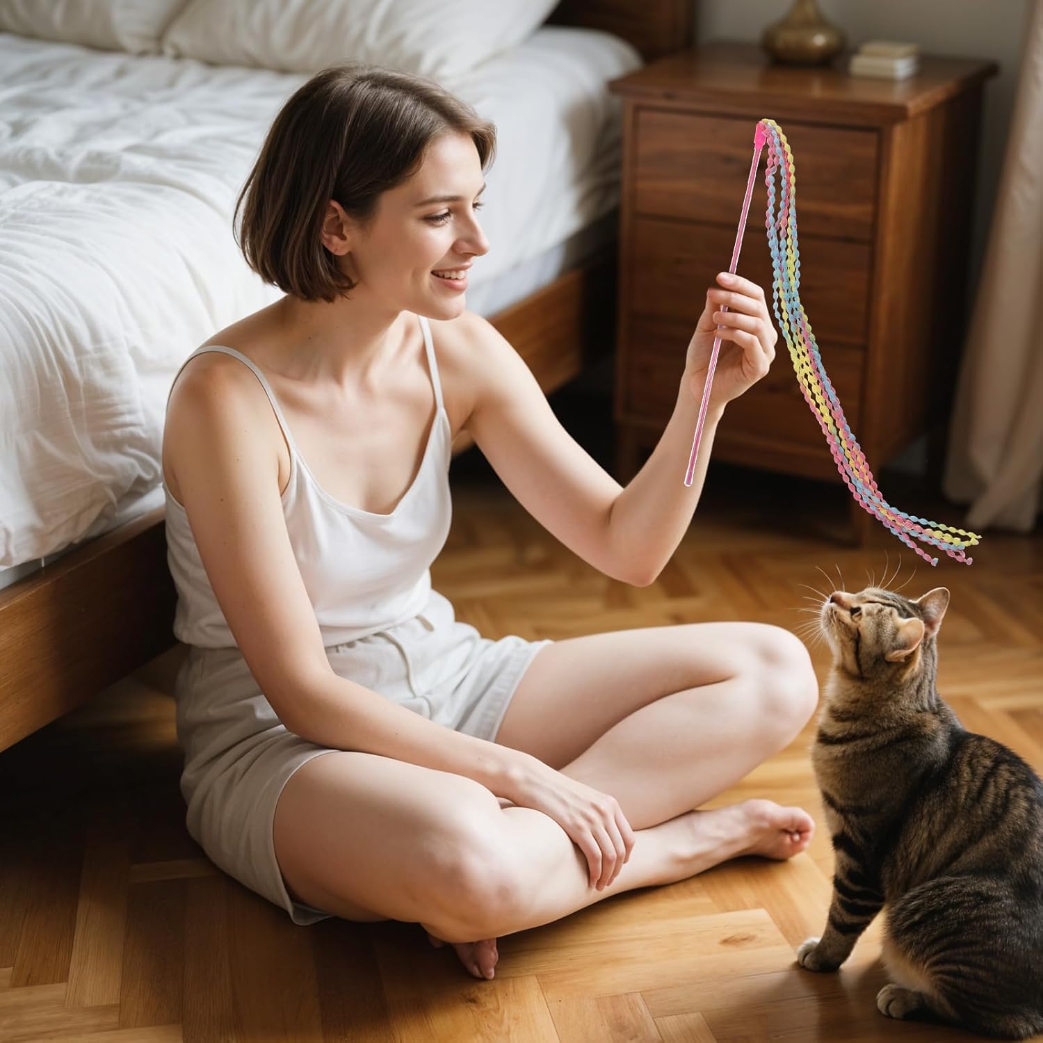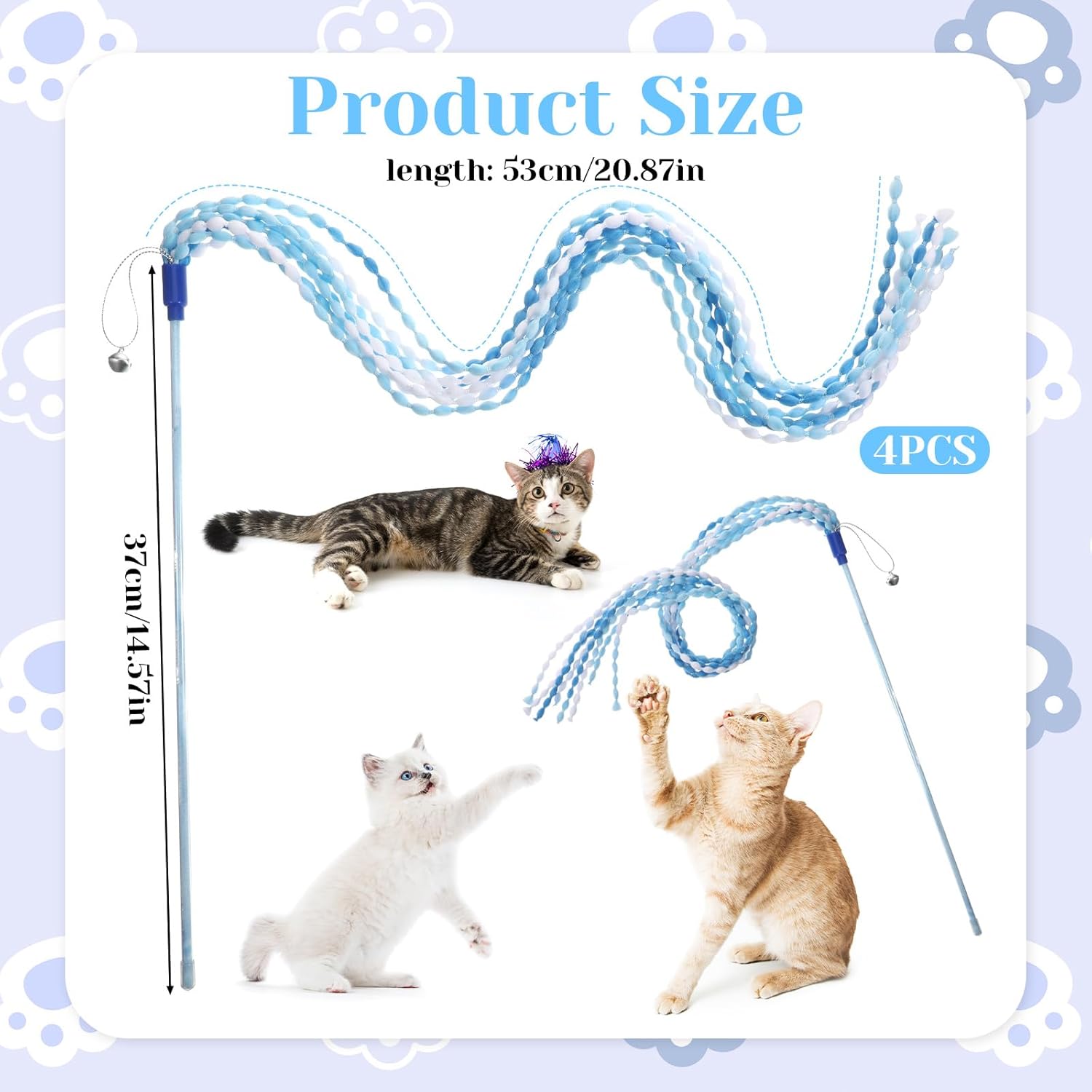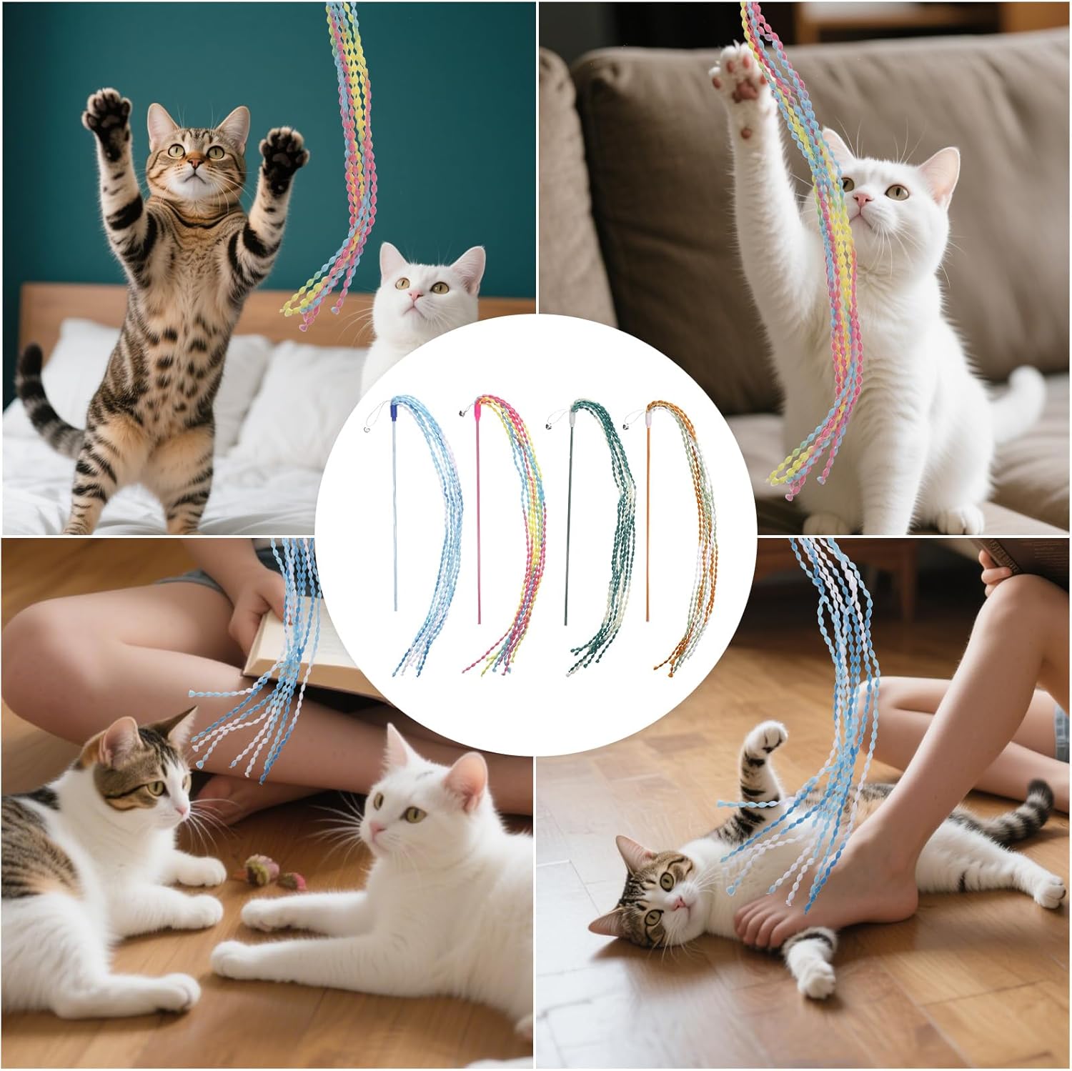 Interactive Cat Toy Set: Includes 4 brightly colored cat teasers designed to engage your feline friend in play activities. Whether it’s play or interactive games, it ensures endless fun and exercise.