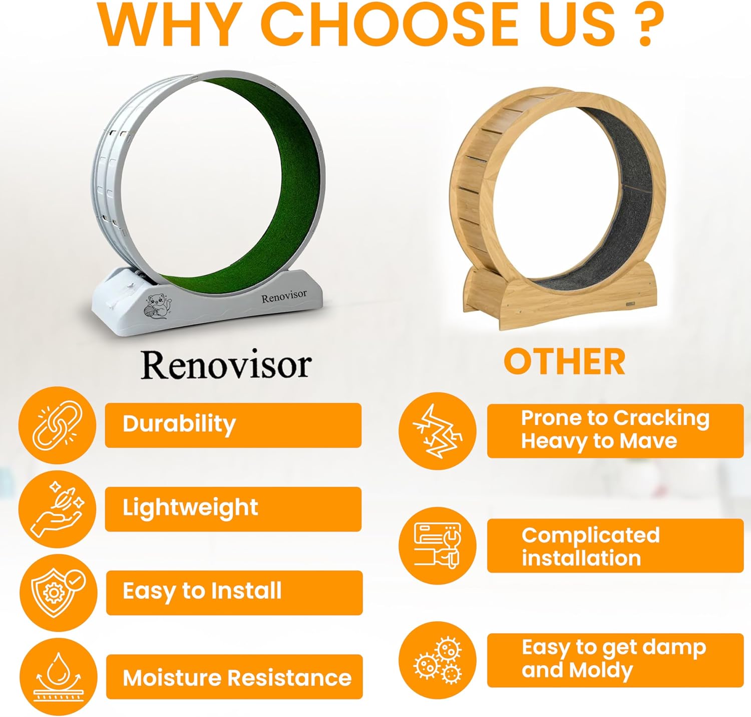 Quick, Tool-Free Assembly: Our cat treadmill assembles in under 10 minutes without any tools. It’s lighter and faster to build than any wooden cat wheel, making setup a breeze – so your feline friend can start running in no time.