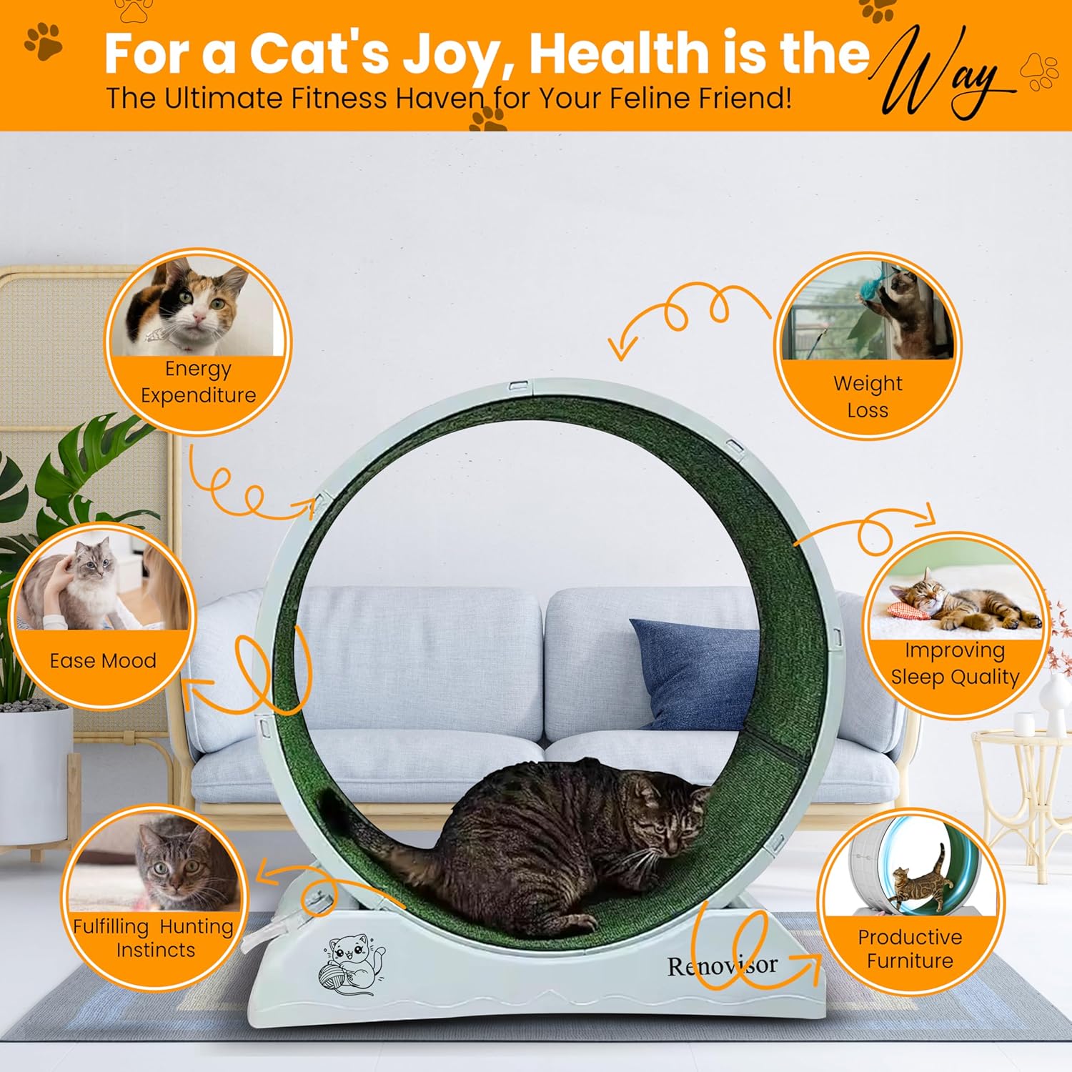 Promotes Daily Cat Exercise: Our cat exercise wheel keeps your feline stimulated and physically active. Our cat treadmill for indoor cats is an ideal way to satisfy natural hunting instincts while boosting overall health and behavior