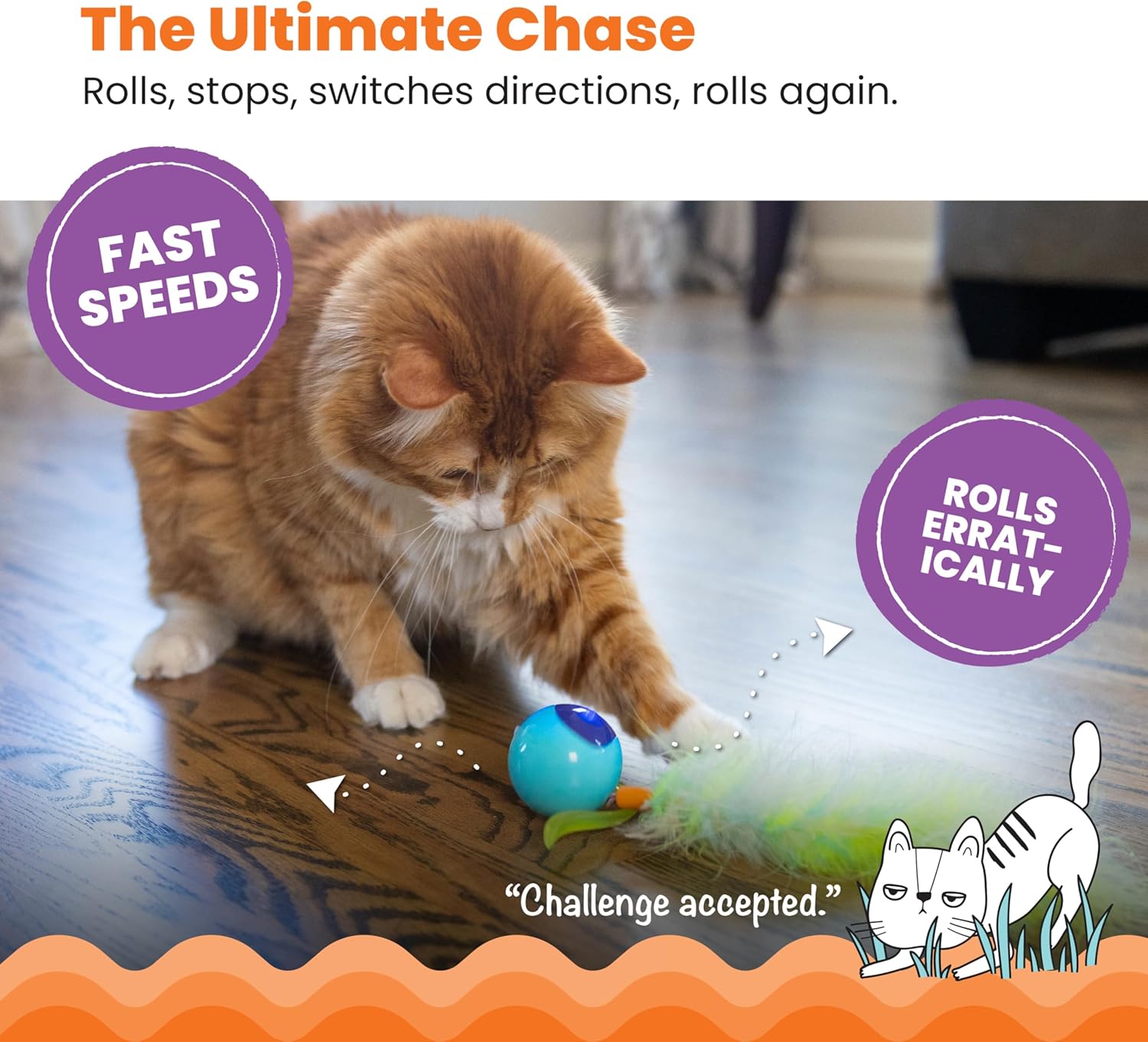 Interactive Motion & Light-Up Ball: Rolls erratically with LED lights to mimic live prey and captivate curious cats; moves for 3 minutes, pauses, then rolls again to keep your feline guessing