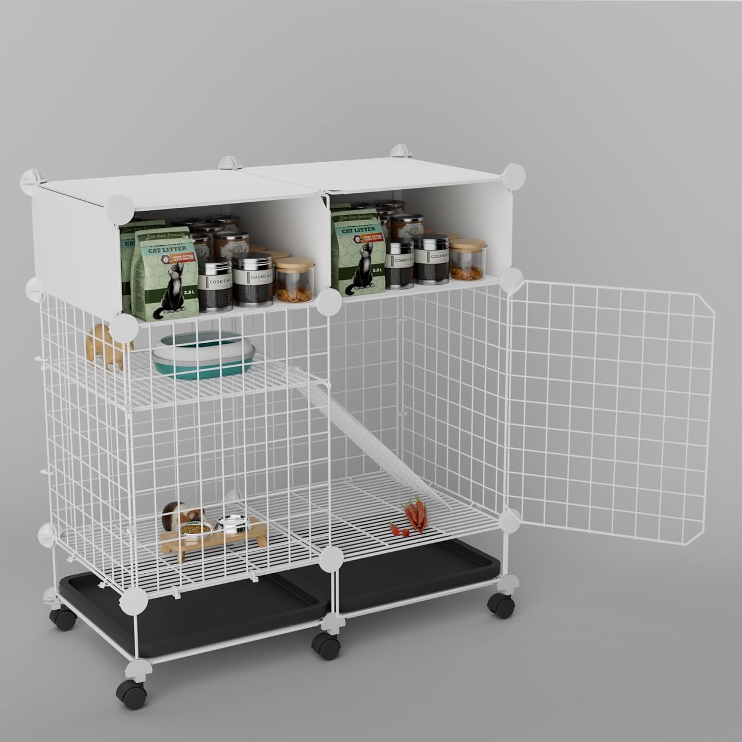 Swivel Casters: Each wheel supports up to 11 lbs, with a set of 10 and the 360° swivel design allows for easy direction changes, making your small animal pet cage flexible and simple to move