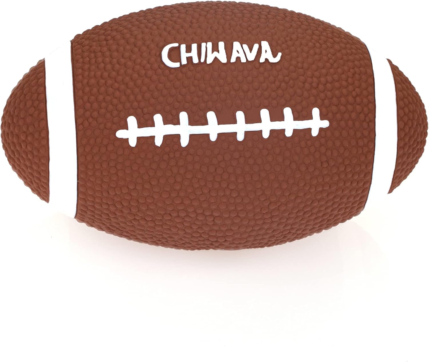 Chiwava football rugby dog toys are made from Latex,NON-TOXIC. stuffed filled.toys come in set of 2PCS brown football rugby which have small squeaker which makes squeak sound when you squeeze it. Great for fetch, tossing, throw toy.helps to release excessive energy and reduce boredom.perfect for interactive games to enhance your relationship with your pets.