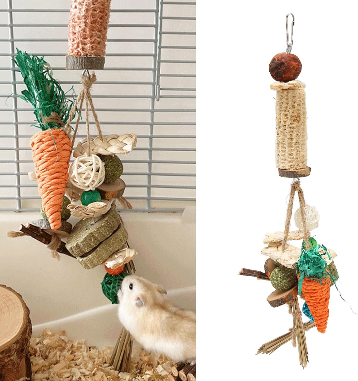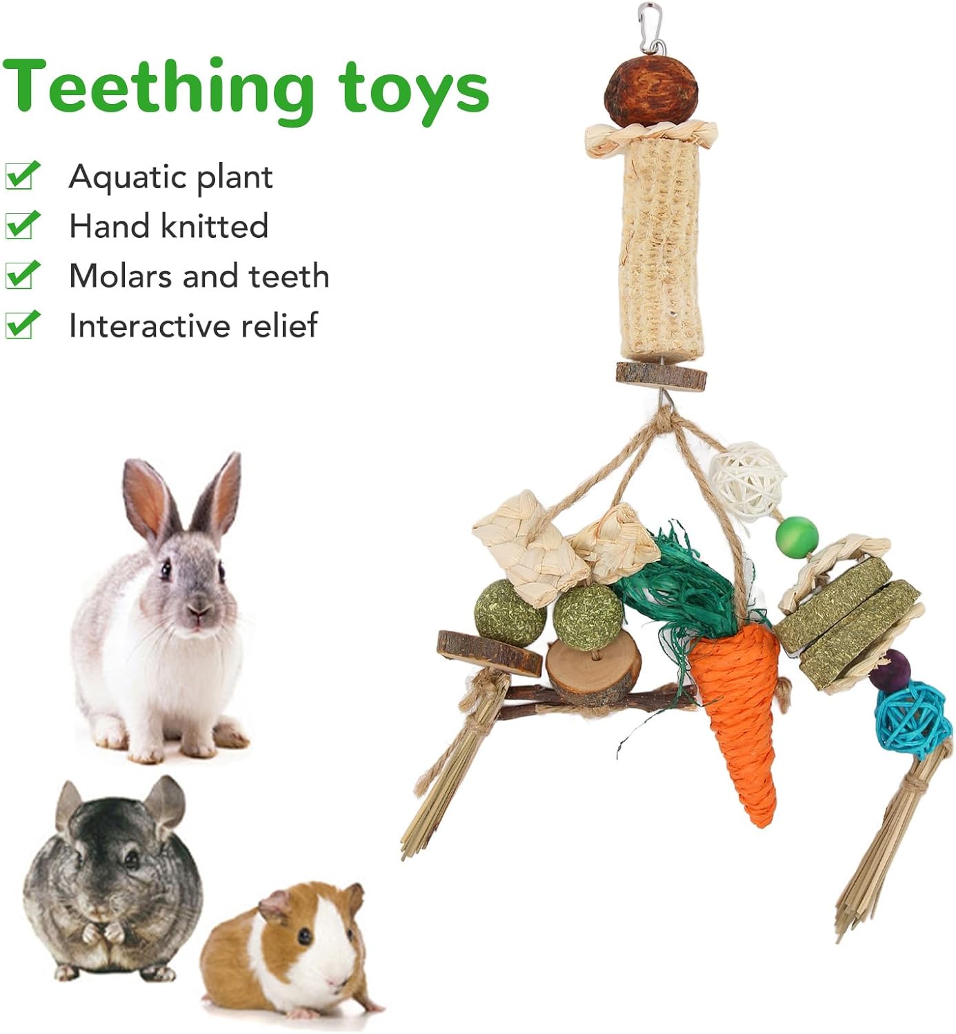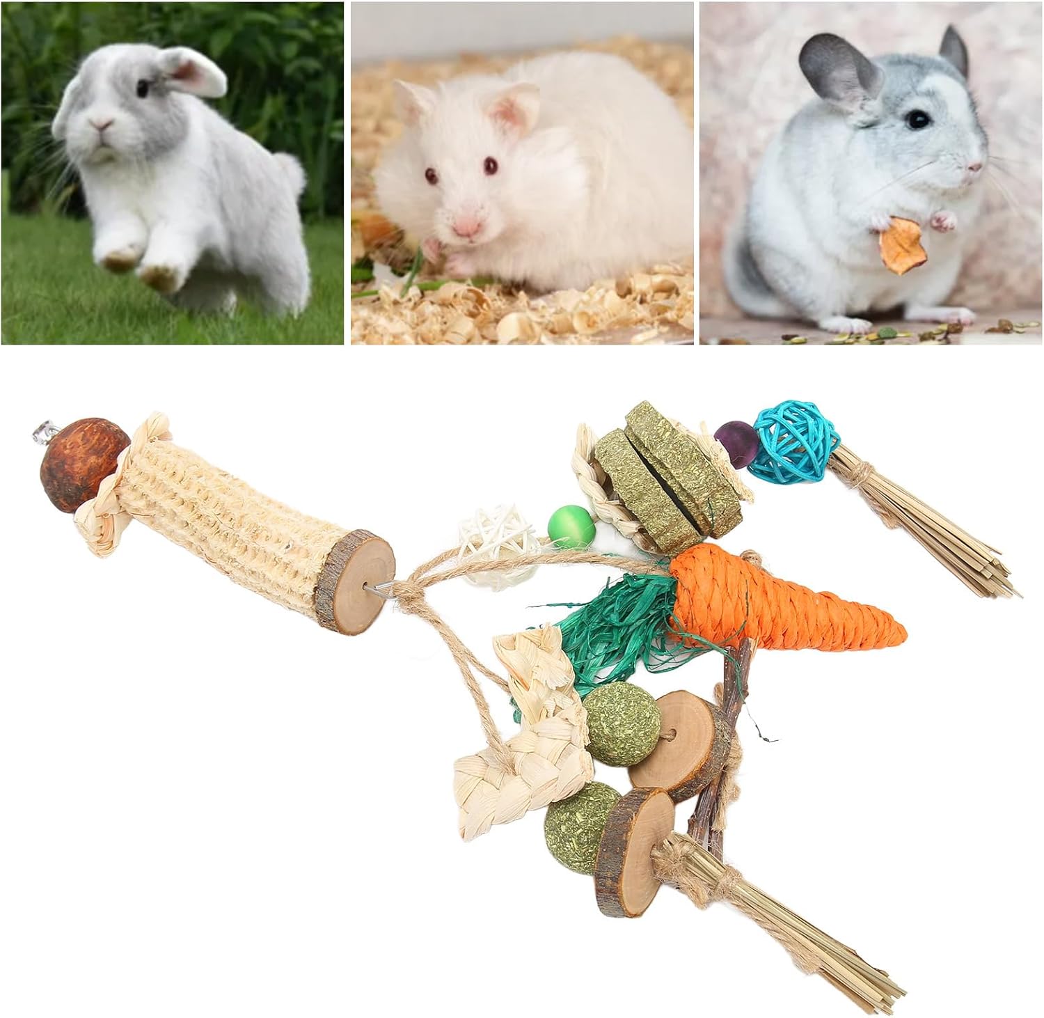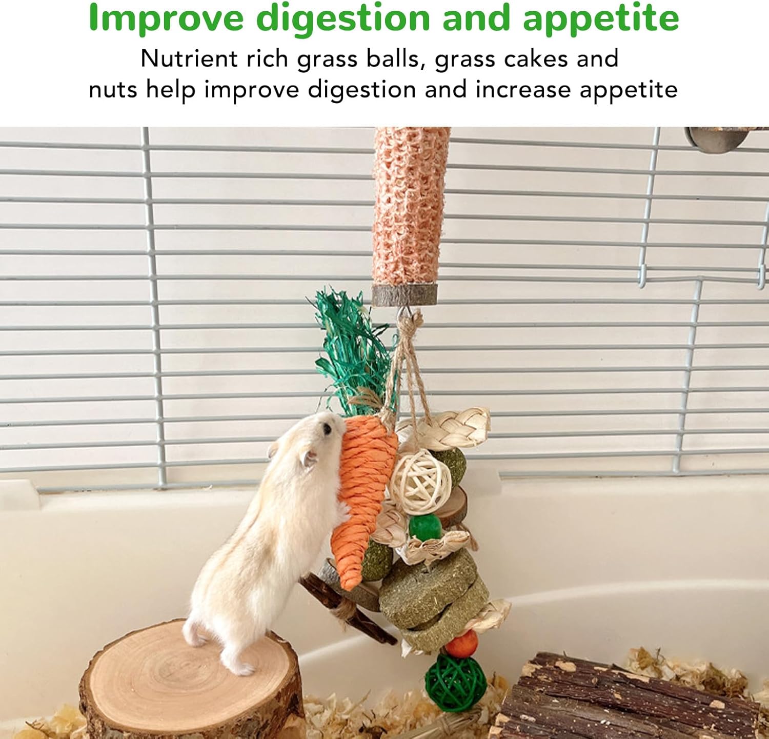 TEETH GRINDING: Rabbit cage hanging chew toys are used for chewing, allowing rodents to better grind their teeth, and small pets can chew healthily and grind their teeth to relieve boredom.
