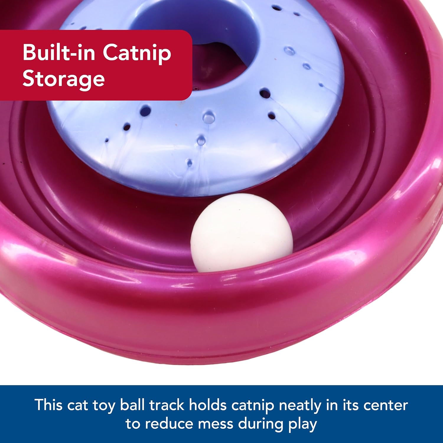 Catnip Cat Toy: This cat toy ball track holds catnip neatly in its center to reduce mess during play