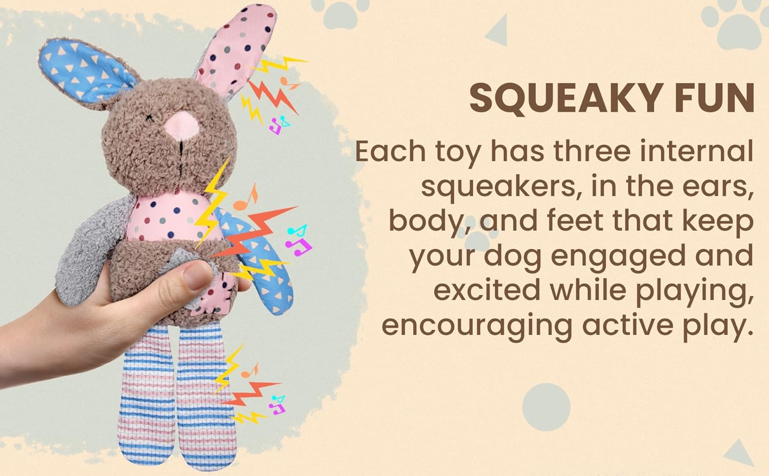 Colorful Patches Set – Bear, Bunny, Elephant, Squeaky Plush Dog Toys, All Bread Sizes, Toys, 3-Pack