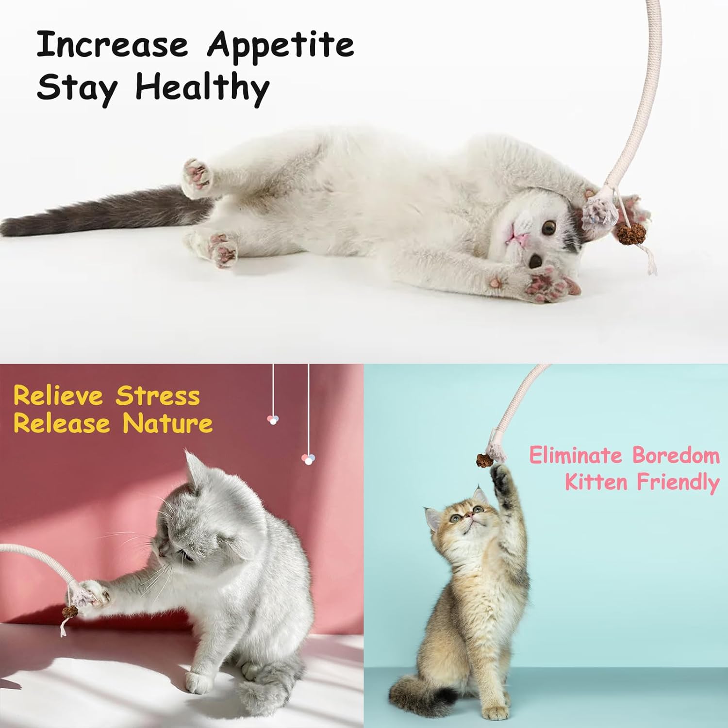 【Catnip】There are silver vine fruits tied to the rope. The smell of catnip helps cats relieve stress. Chewing the fruit can also clean cat’s teeth.