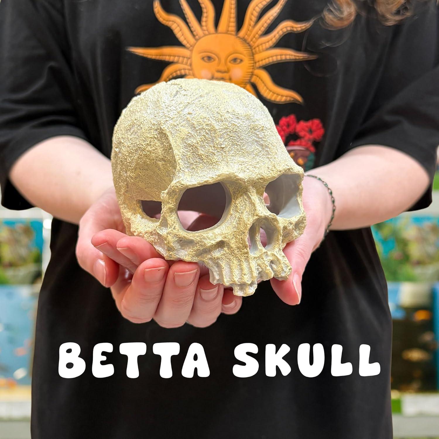 CTWPets Aquarium Human Skull Decor for Betta Fish, Sinking Hide Shrimp Hide
