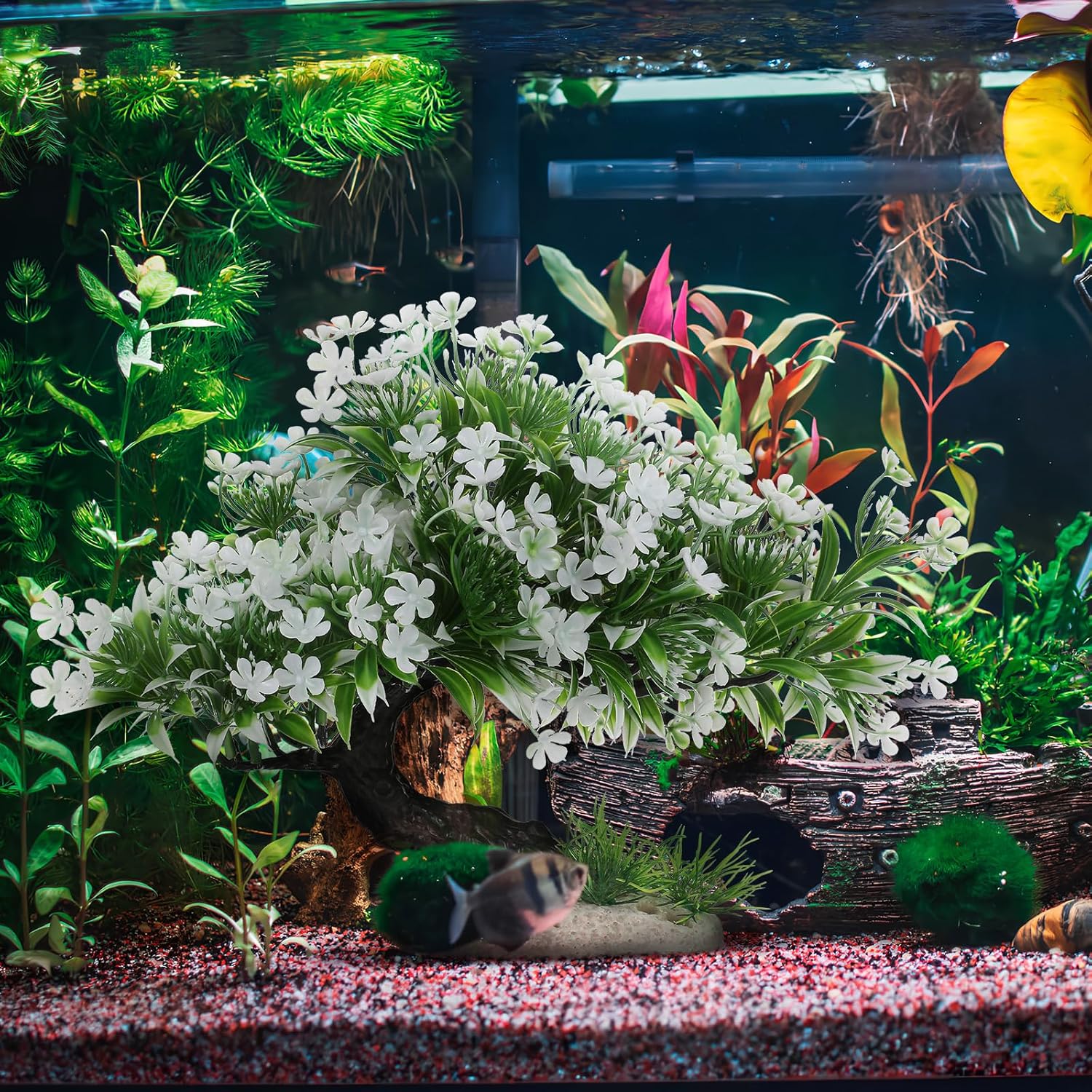 The simulation tree is made of plastic, which has no effect on fish and water quality