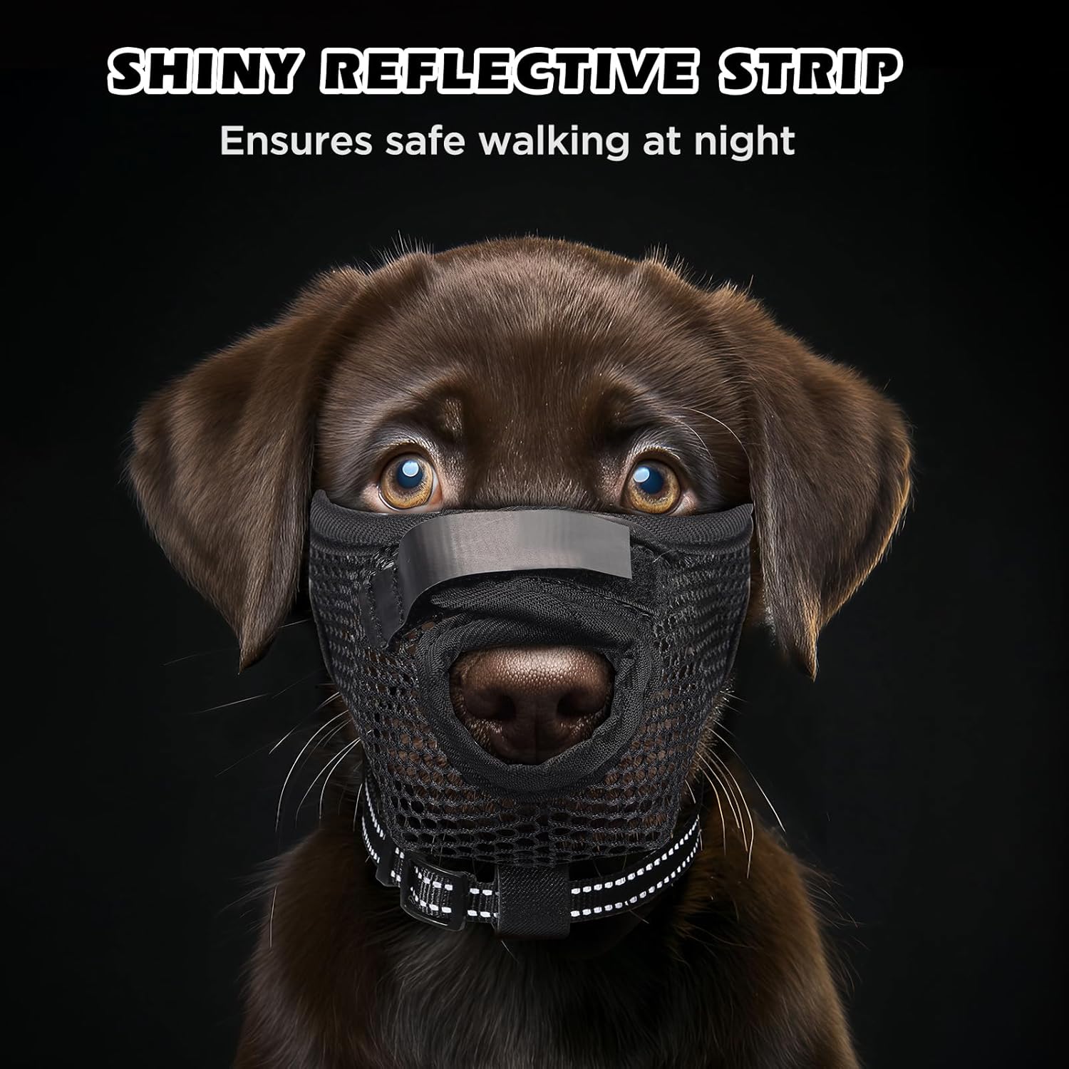 Dog Muzzle,Soft Air Mesh Muzzle for Small Medium Large Sized Dogs,Breathable Soft Dog Muzzle Reflective Adjustable Puppy Muzzles with Collar,Nose Revealing Design,Allows Panting and Drinking