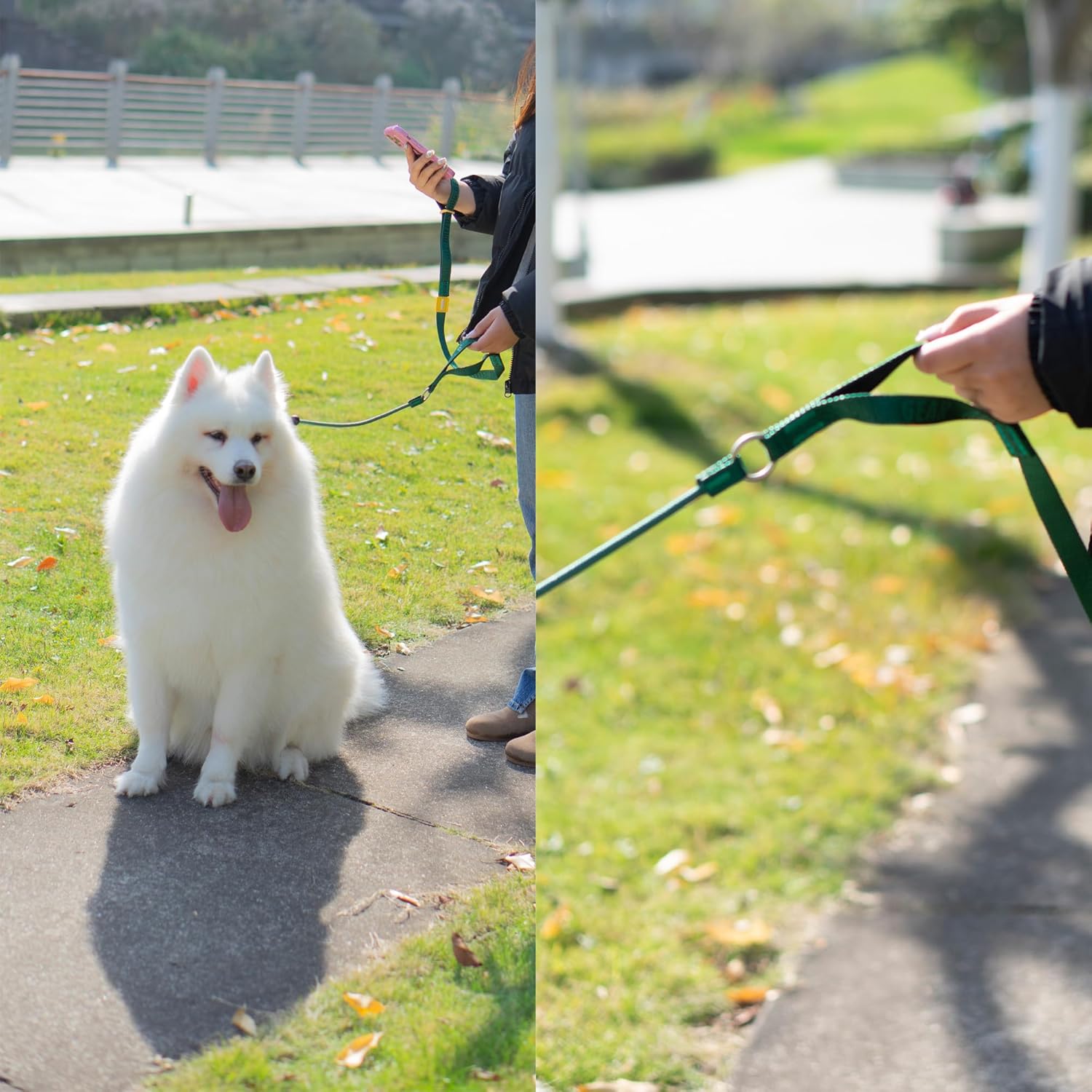 【Accidents Prevention】 Our product features dual handles which can be adapted to various use scenarios,keep your dog colse and safe. The adjustable length feature of this leash provides convenience in various situations. For instance, it can be shortened when walking through crowded areas or extended for more freedom during outdoor activities such as hiking or jogging.