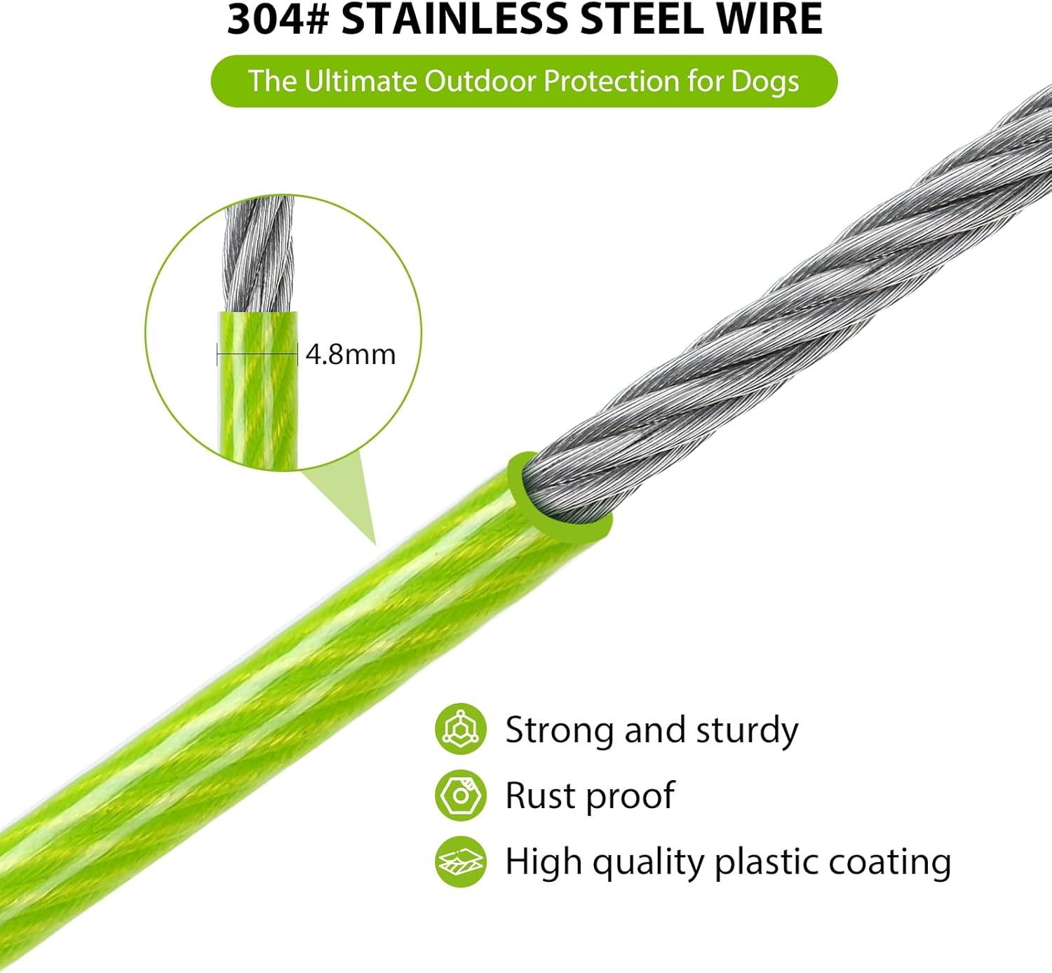 ANTI-RUST AND DURABLE – The steel cable is covered with vinyl, durable, rust-proof, high-strength anti-bite, and can be used for a longer period of time. You can safely play outside with your pet