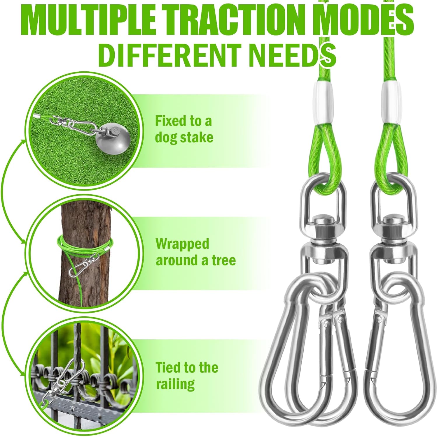 Constructed with rugged steel and a protective PVC coating, this heavy-duty dog tie out cable ensures both strength and rust-resistance. It’s perfect for creating a dog line for outside or as a long dog leash. Whether you need a dog cable tie out for small dogs or a robust dog runner for large dog breeds, this cable offers reliable performance for all your outdoor adventures.