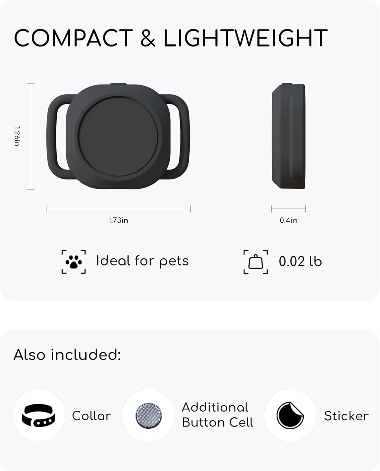 Dog Tracker, Smart Dog Collar with Real-time Pet Location, Cat Tracker Collar (iOS Only), No Monthly Fee & Long Battery Life, Works with Find My, Ideal for Dog/Cat (Black)