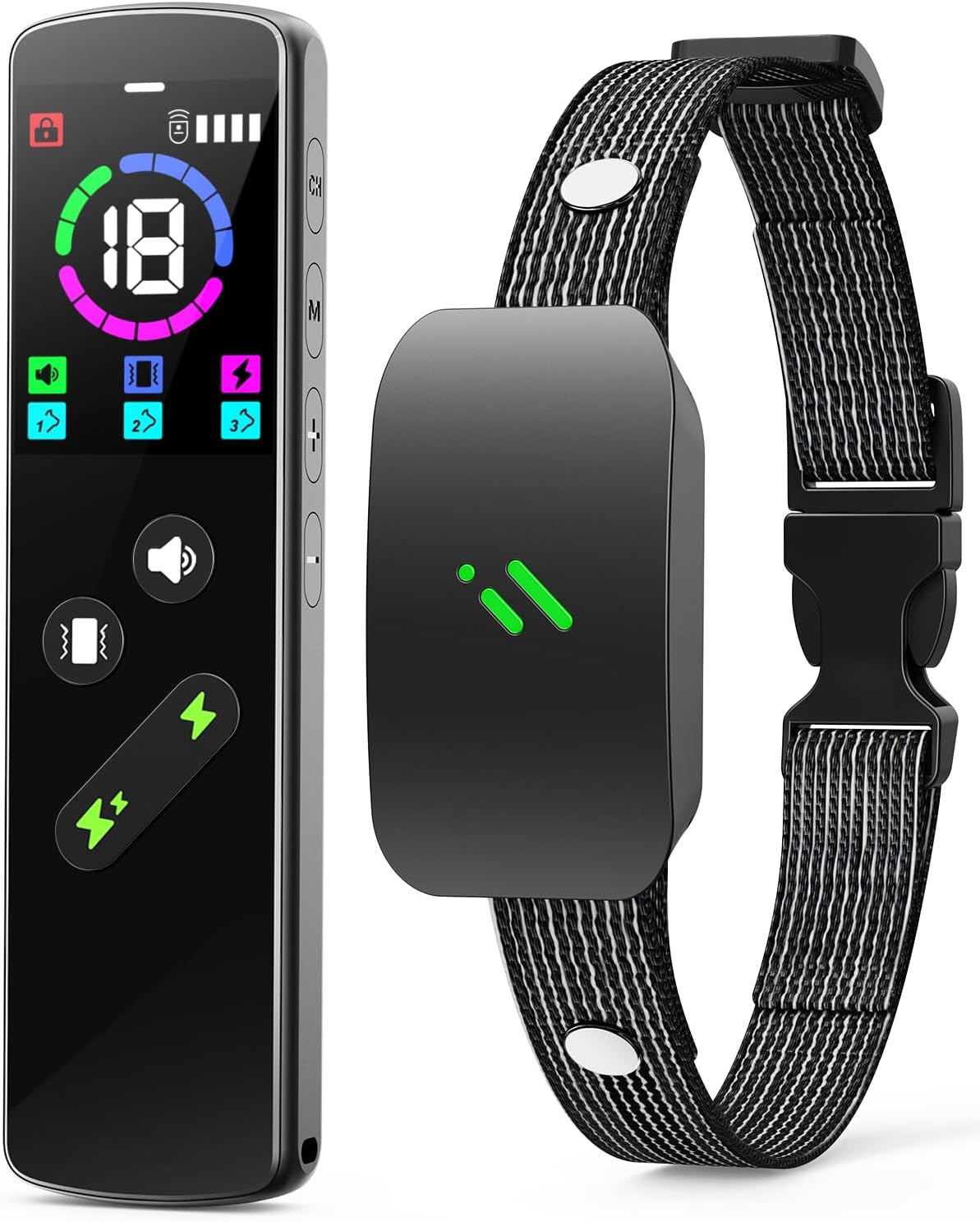 4 Effective Safe Training Modes: Our dog training collar features 4 modes: beep (1-10 levels), vibration (1-10 levels), static shock (1-18 levels), and a shock boost (30% stronger). The remote control includes a security lock to prevent accidental triggering and ensure accurate commands