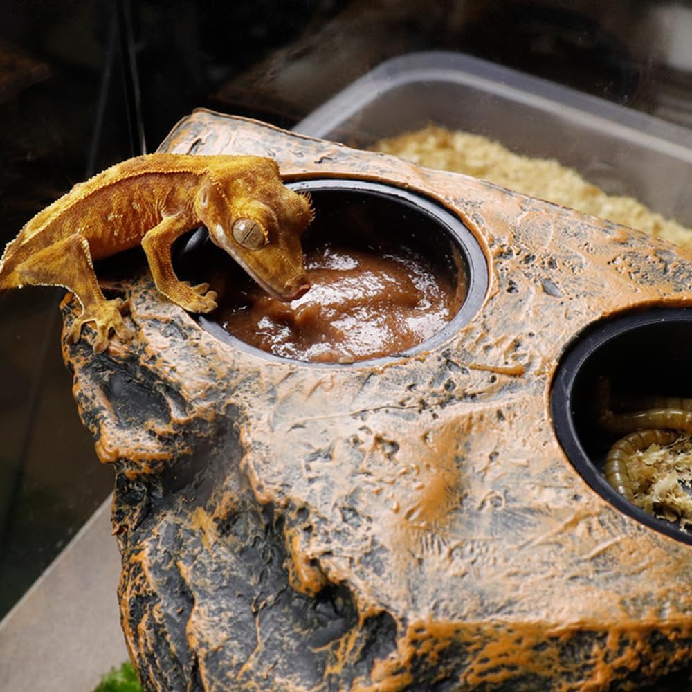 Dual Compartment Food Bowl: Magnetic Reptile Ledge is specially designed for reptile pets, dual bowls can be a bowl of water, a food, convenient to feed a variety of feed at the same time, the food bowl can be separated, easy to clean, can replace the food bowl.