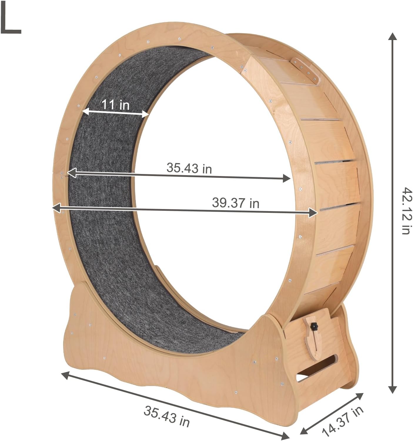 Large Diameter: With an external diameter of 39.37 in and an internal diameter of 35.43 in, the wheel width is 11 in, enhanced base is wide and solid enough to supporting cats between 13.2 to 16.5lb. Most pets stay indoors and lack exercise, this cat wheel allows your cats to stretch, play freely and lose weight
