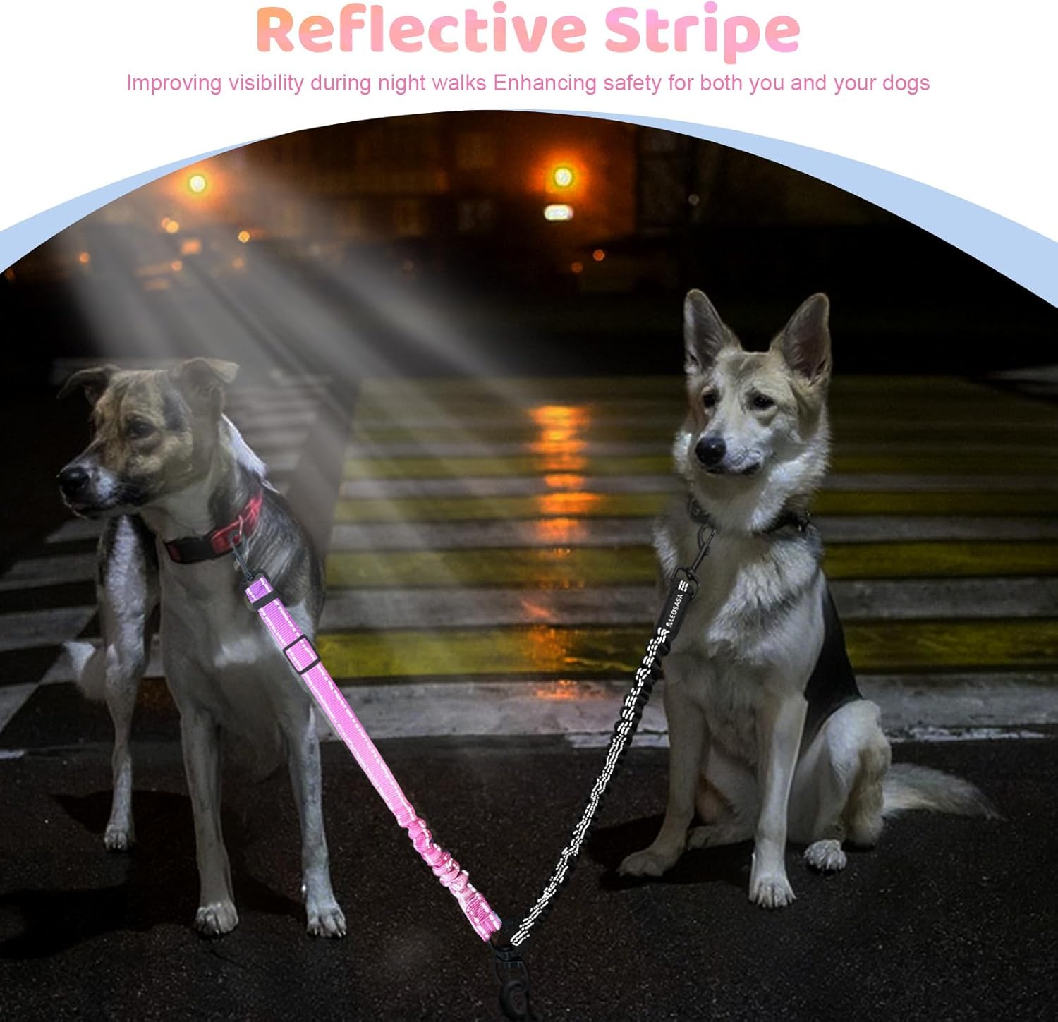 Double Dog Leash for Two Dogs – Gradient Color No Tangle Swivel Dog Coupler with Heavy Duty Clip, Size Adjustable Bungee Leash Attachment for Small, Medium, Large 2 Dogs, Style 4
