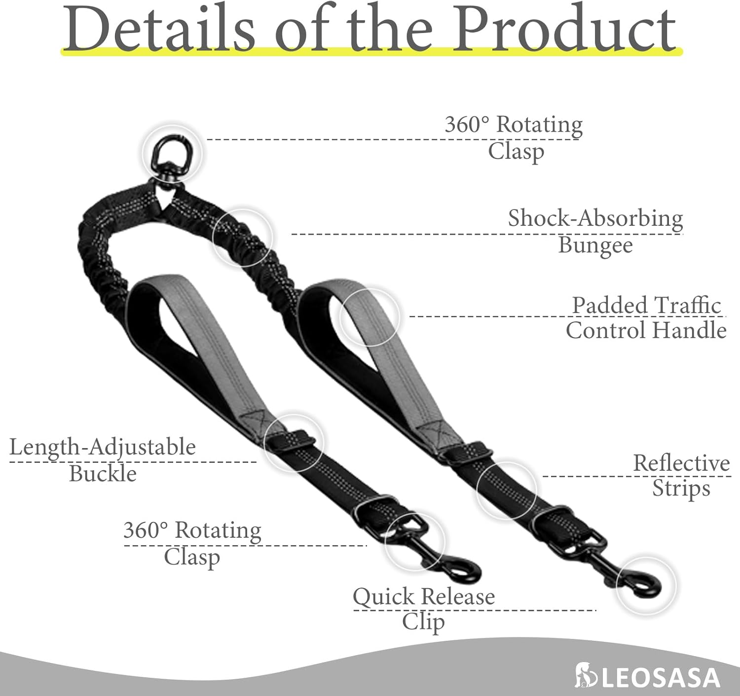 【360°Swivel Clip for Tangle-Free】 – The Splitter is equipped with a 360° Rotating Buckle, allowing for quick release and locking, preventing twisting or knotting. This ensures your dog’s freedom of movement, giving them more space while aving you time from having to untangle the leash as they move from side to side.