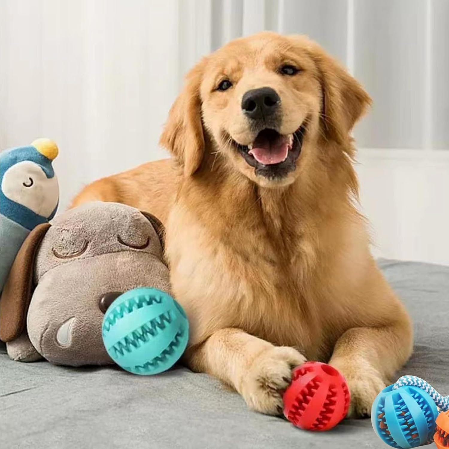 Indestructible Fun and Dental Care: Dog Chew Toy for Happy Playtime Looking for a durable and engaging dog toys to keep them busy and entertained for hours? This ball-on-rope dog teeth cleaning chews is the solution! Long-Lasting Play for Medium & Large Breeds: Featuring a hefty 13.78-inch rope and a 2.36-inch diameter ball, this interactive dog toys for boredom is ideal for medium and large breeds. The durable construction withstands even the most aggressive chewers, keeping playtime going strong. Dental Care & Gummy Satisfaction: The unique design combines two benefits: a textured rubber ball that massages gums and helps clean teeth with every chew, and a sturdy cotton rope that provides a satisfying chewing outlet. Safe & Easy to Clean: Made from non-toxic TPR rubber and tightly woven cotton rope, this treat dispensing dog toys, mentally stimulating toys for dogs prioritizes your dog’s safety. Plus, maintaining cleanliness is simple – just hand wash with warm water and mild soap. Happy Dog, Happy Home: This engagingmentally stimulating toys for dogs redirects chewing instincts away from furniture and other household items, saving you money and reducing stress for both you and your dog. Overall Wellness & Mental Stimulation: The textured rubber surface effectively removes plaque and tartar buildup, promoting long-term dental health. The chewing action also stimulates blood circulation in the gums. Furthermore, the puppy training can be filled with treats or kibble, extending playtime and keeping your dog mentally stimulated. Invest in your dog’s happiness and well-being with this versatile chew toy!