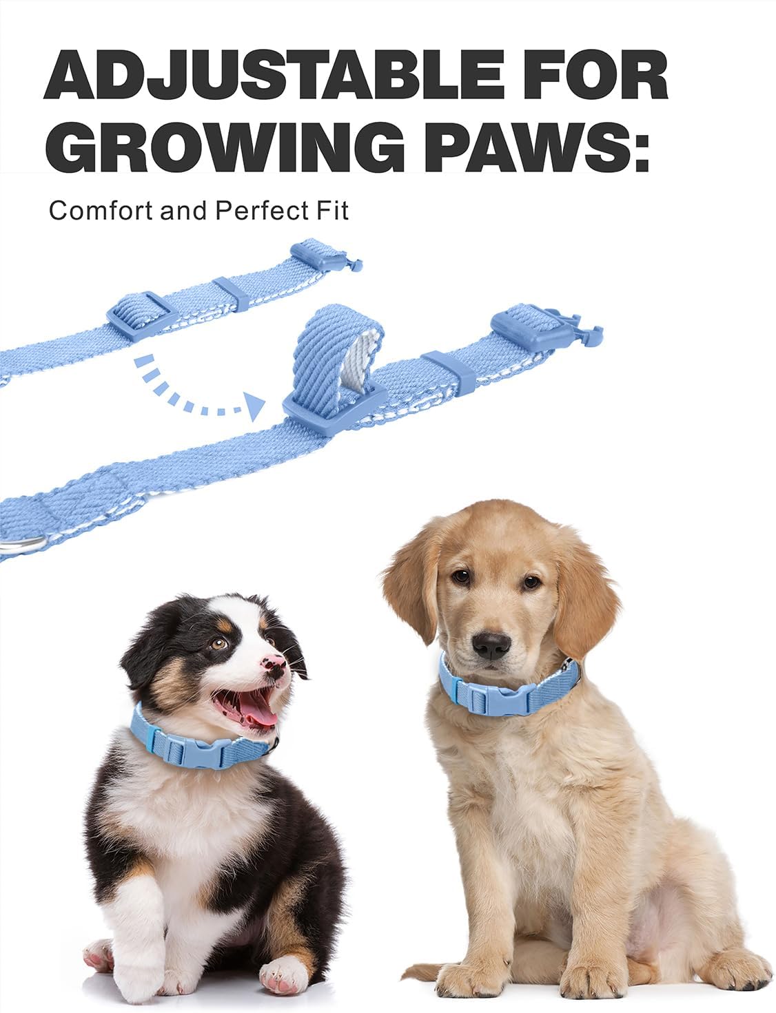 Adjustable Fit: Available in sizes for extra-small, small, medium, large dogs and cats, this collar provides a secure and comfortable fit, perfect for growing dogs. Be sure to check our size chart before ordering to ensure the best fit for your furry friends