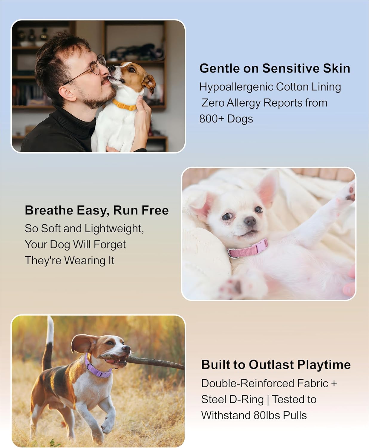 Ultra Soft and Comfortable: Made from a lightweight breathable polyester-cotton blend that’s gentle on your pet’s skin, ensure odorless and without any irritation, perfect for everyday wear, long walks, and outdoor activities