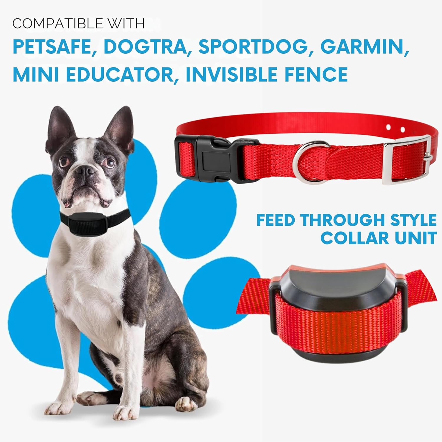 Experience the difference a new e collar replacement strap can make for your pup. Works with all “feed Through” style receivers. NOT compatible with “TWO HOLE” style Petsafe collars.