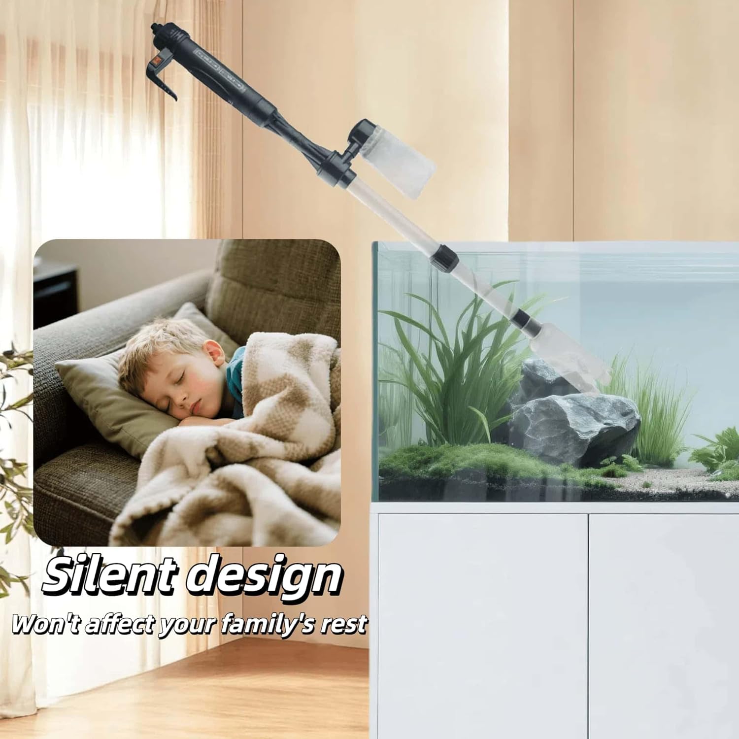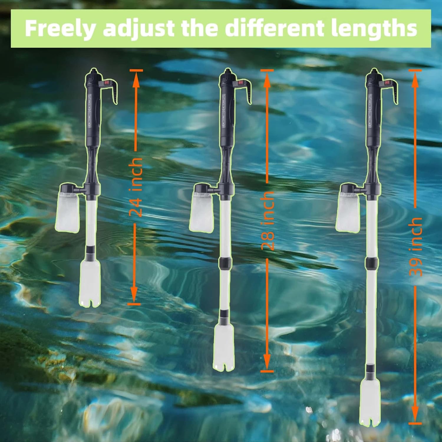 This electric aquarium gravel vacuum is suitable for aquariums from 5 to 100 gallons. 90% faster than manual cleaning.
