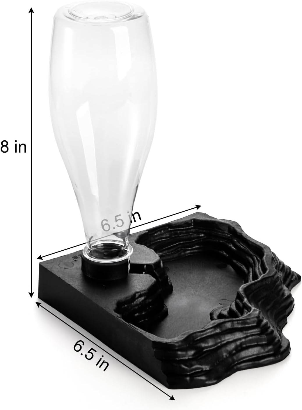 Elsjoy 2 pack reptile feeders include 2 x water dishes and 2 x bottles. Feeder size: 6.5″L x 6.5″W x 8″H. The 13.5 oz capacity reptile water bottle ensures your pets always have enough drinking water. It automatically delivers water to the water dish, so you won’t have to manually fill up the dish.