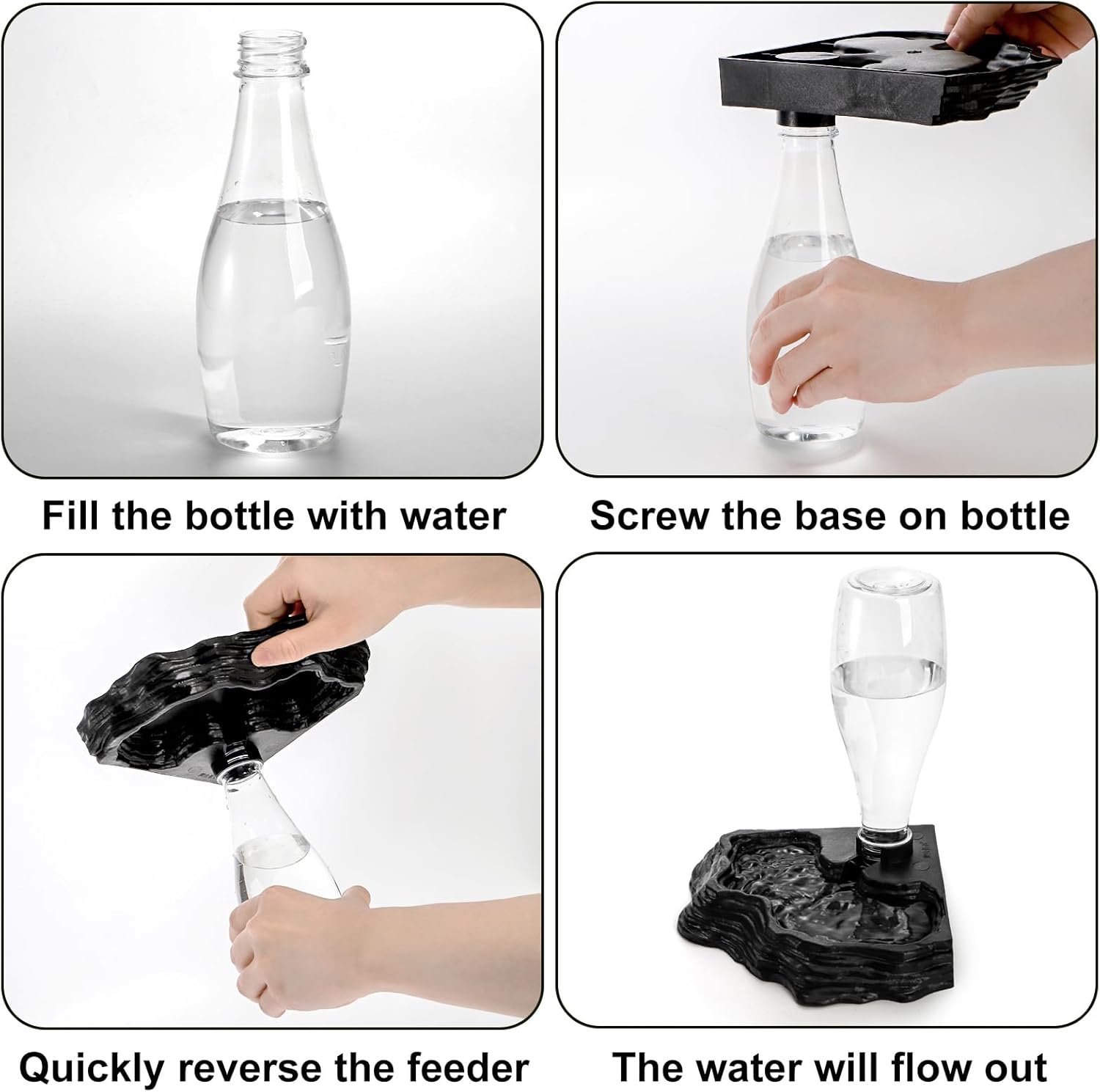 Fill the bottle with waterScrew the base onto the bottleQuickly reverse the feederWater will flow automatically