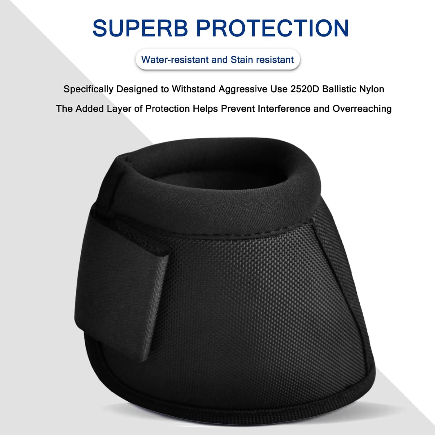 Equine Ballistic Overreach No-Turn Bell Boots for Horses – Horse Hoof Protection Boots (Sold in Pairs) Black X-Large