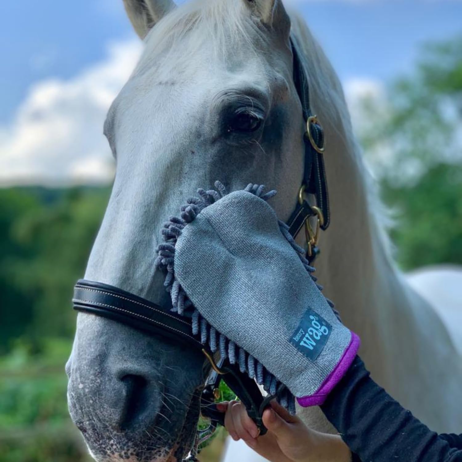 Effectively removes water, mud and dirt from the horse’s coat, head and legs. The material absorbs more water and dries more quickly than regular towels. Made from soft, highly absorbent microfibre, making cleaning and drying easier. Effective at removing dirt and water from the underside of a horse’s legs and head. Ideal for use after wet, muddy rides or at events, where washing is not possible, to remove mud and moisture, reducing the risks of infection and sores. Can be used to dry around ears and eyes and is ideal for wiping away sweat after removing the saddle. The soft material does not pull on the hair and gives a silky shine to the coat. Incorporates gloved ends with seams on the fingers to allow greater control when drying your horse’s coat.