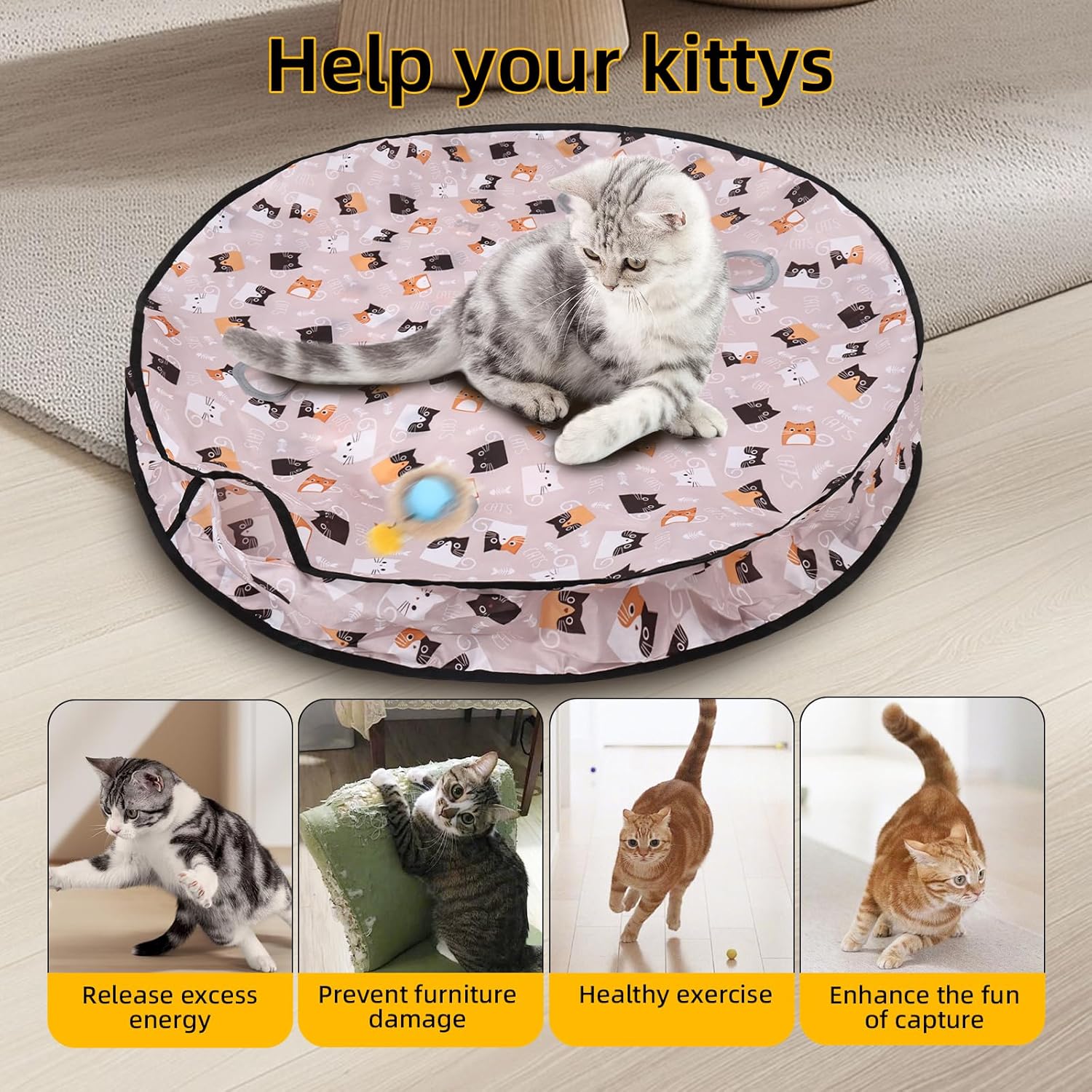 STRESS-FREE DURABLE CAT TOY BALL: LAB-TESTED TOUGHNESS! Soft eco-silicone + wipe-clean apron ensures this cat stimulating toy for indoor cats outlasts competitors.