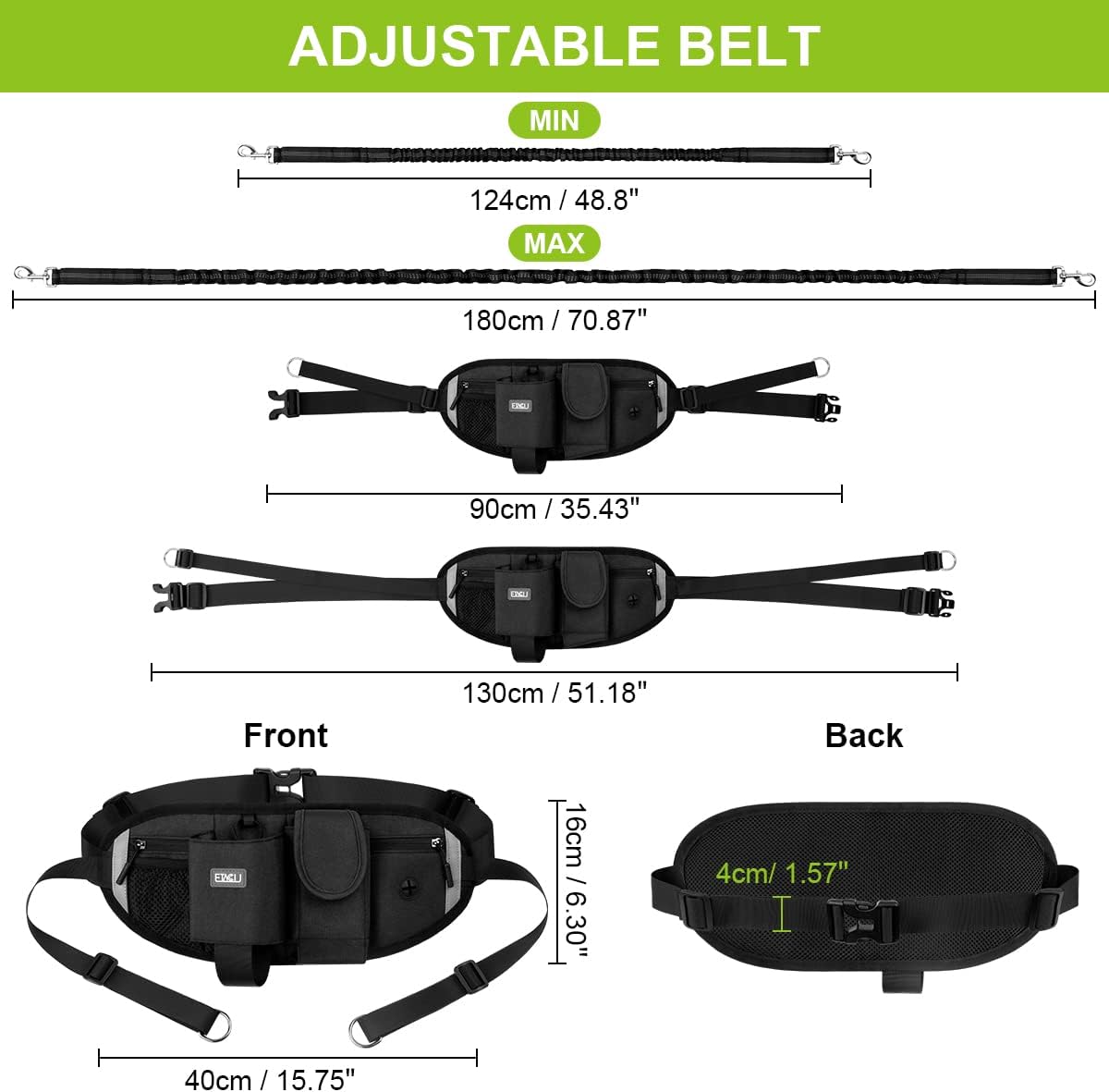 ETACCU Hands Free Dog Leash for 2 Dogs with Dual Heavy-Duty Traffic Handle, Retractable Dog Walking Belt, Adjustable Dog Running Waist Belt with Pouch, Reflective Stitches Leash for Jogging Black