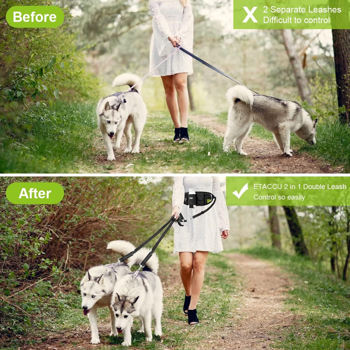 【HANDS-FREE CONTROL】 With a Heavy-duty Traffic Handle design, ETACCU dog walking belt provides added control when needed, the dual dog running leash keeps you and your dogs safe on walks and runs. It is fantastic for running with multiple dogs!